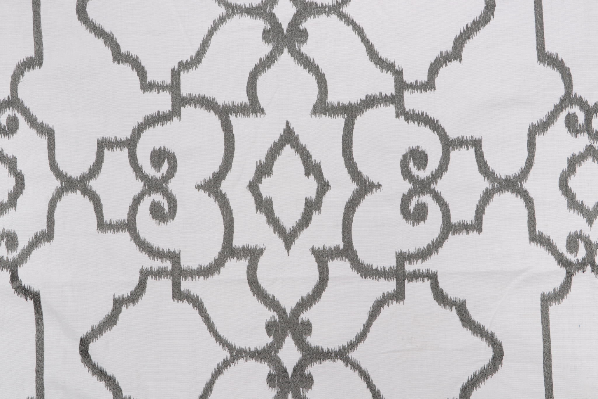 Thibaut Ogden W714213 Embroidered Cotton Drapery Fabric in Dark Grey is a remnant, which is sold as a whole piece.
