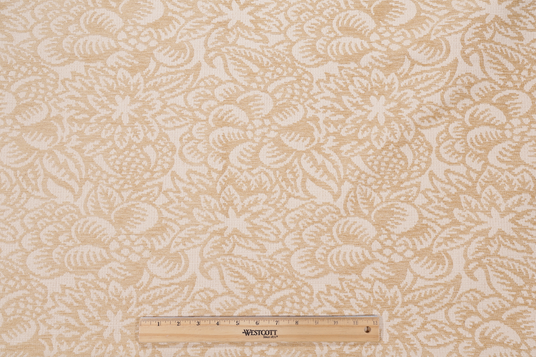 Scalamandre Mangrove Chenille Damask Upholstery Fabric in Desert is a remnant, which is sold as a whole piece.