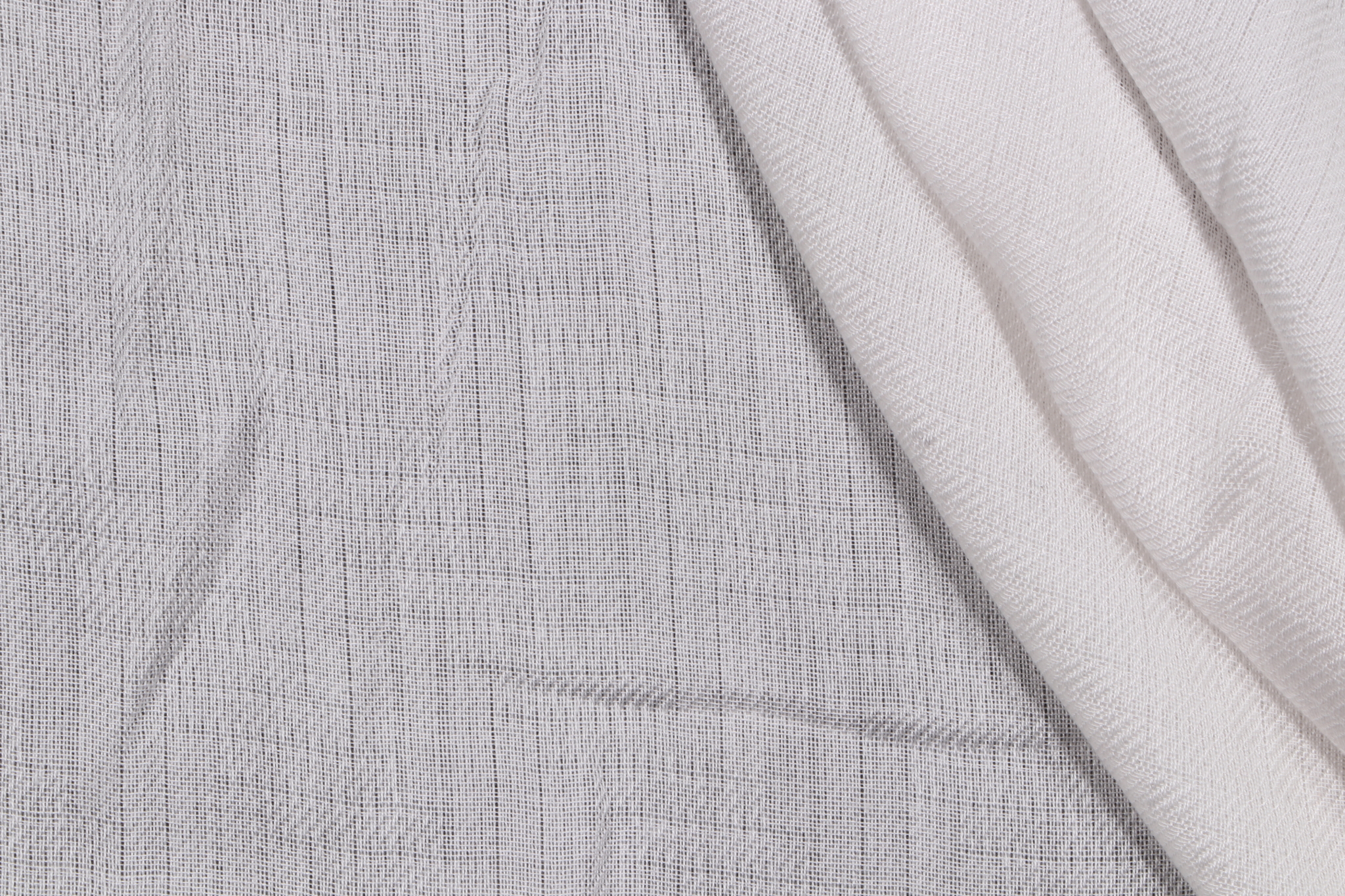 Thibaut Zephyr W80368 Semi-Sheer Drapery Weight Solution Dyed Acrylic Outdoor Fabric in White is a remnant. Fabric remnants refer to leftover pieces of fabric from production runs at manufacturing sites or pieces that remain from by the yard stock. The lengths of these remnants can vary from a few inches to several yards and are typically sold at a reduced price, since they represent remaining inventory.