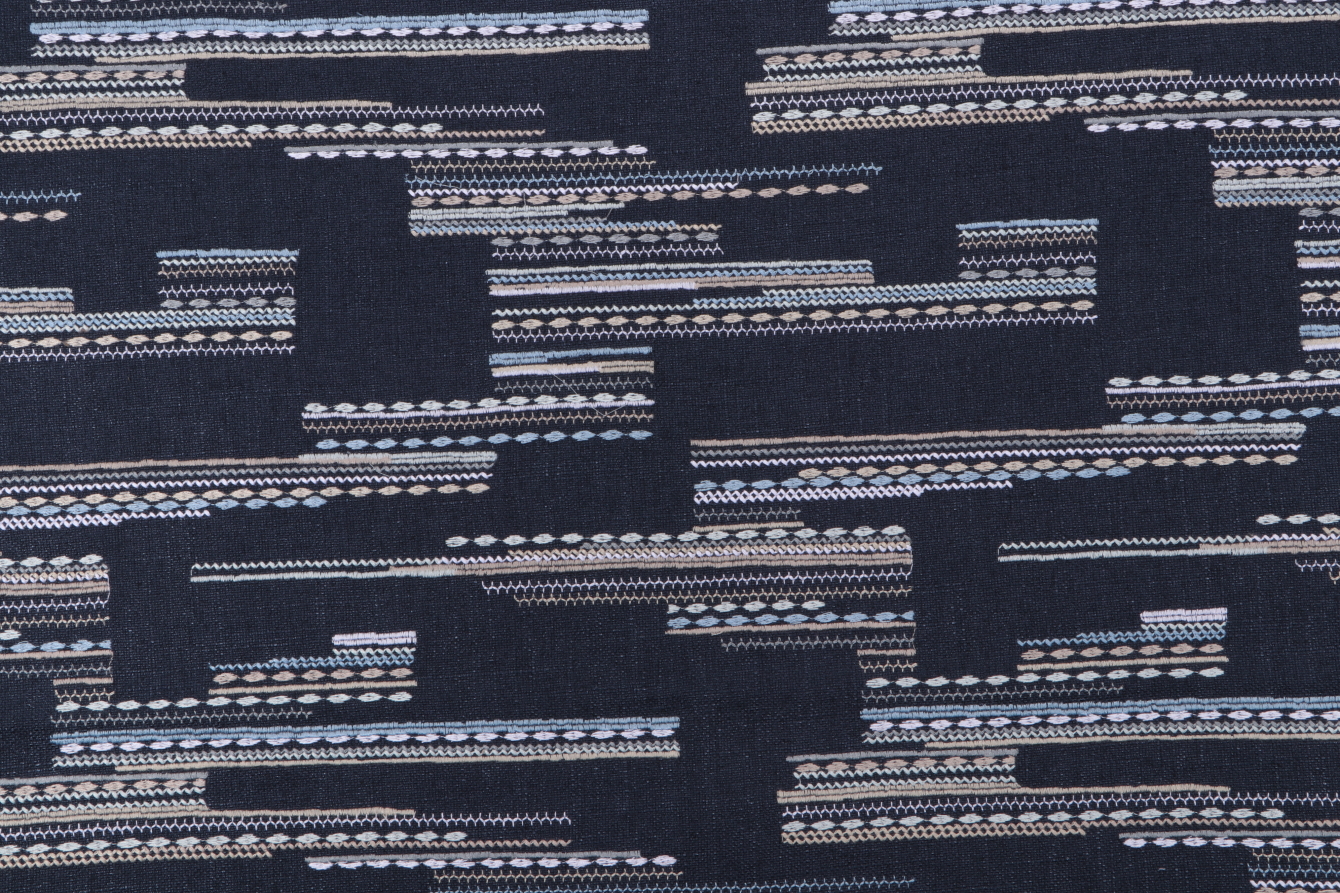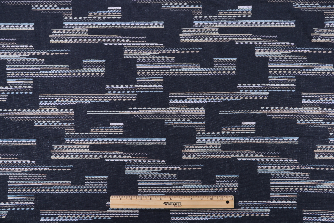 1 Yard Amna Embroidered Drapery Fabric in Indigo Details