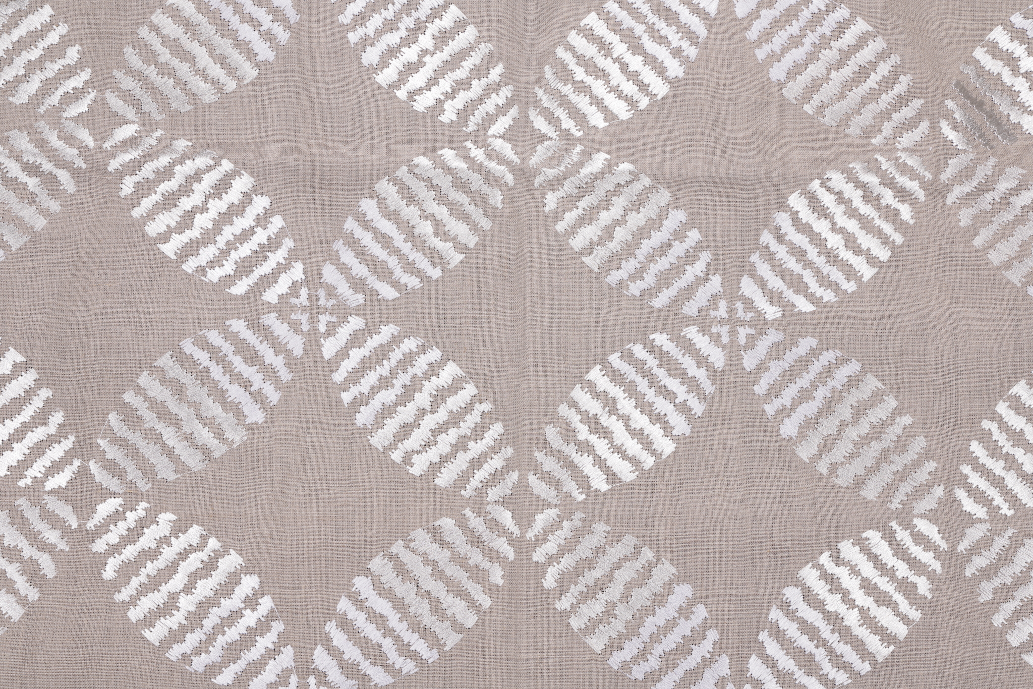 Anna French Zoom AW9103 Embroidered Linen Drapery Fabric in Natural for Thibaut is a remnant. Fabric remnants refer to leftover pieces of fabric from production runs at manufacturing sites or pieces that remain from by the yard stock. The lengths of these remnants can vary from a few inches to several yards and are typically sold at a reduced price, since they represent remaining inventory.
