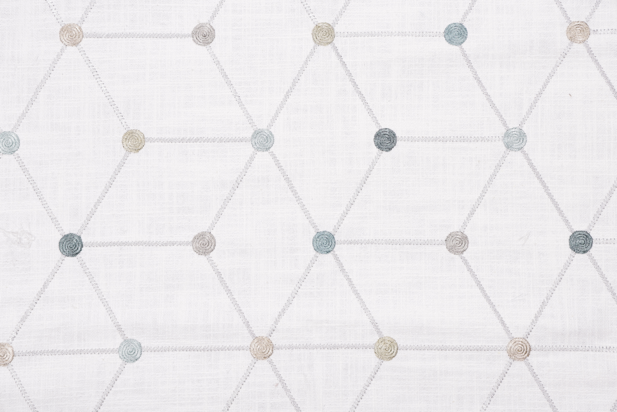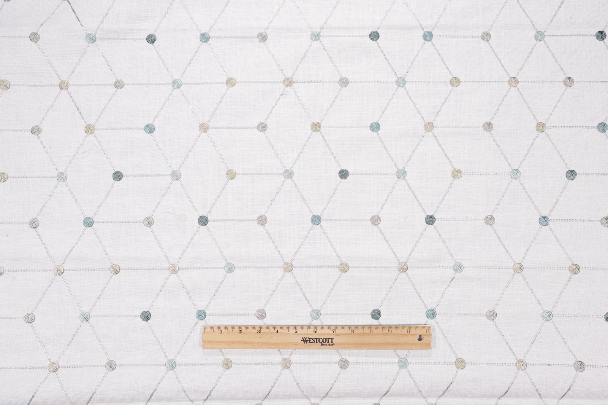 Asterisk Embroidered Drapery Fabric in Aqua is a remnant, which is sold as a whole piece.