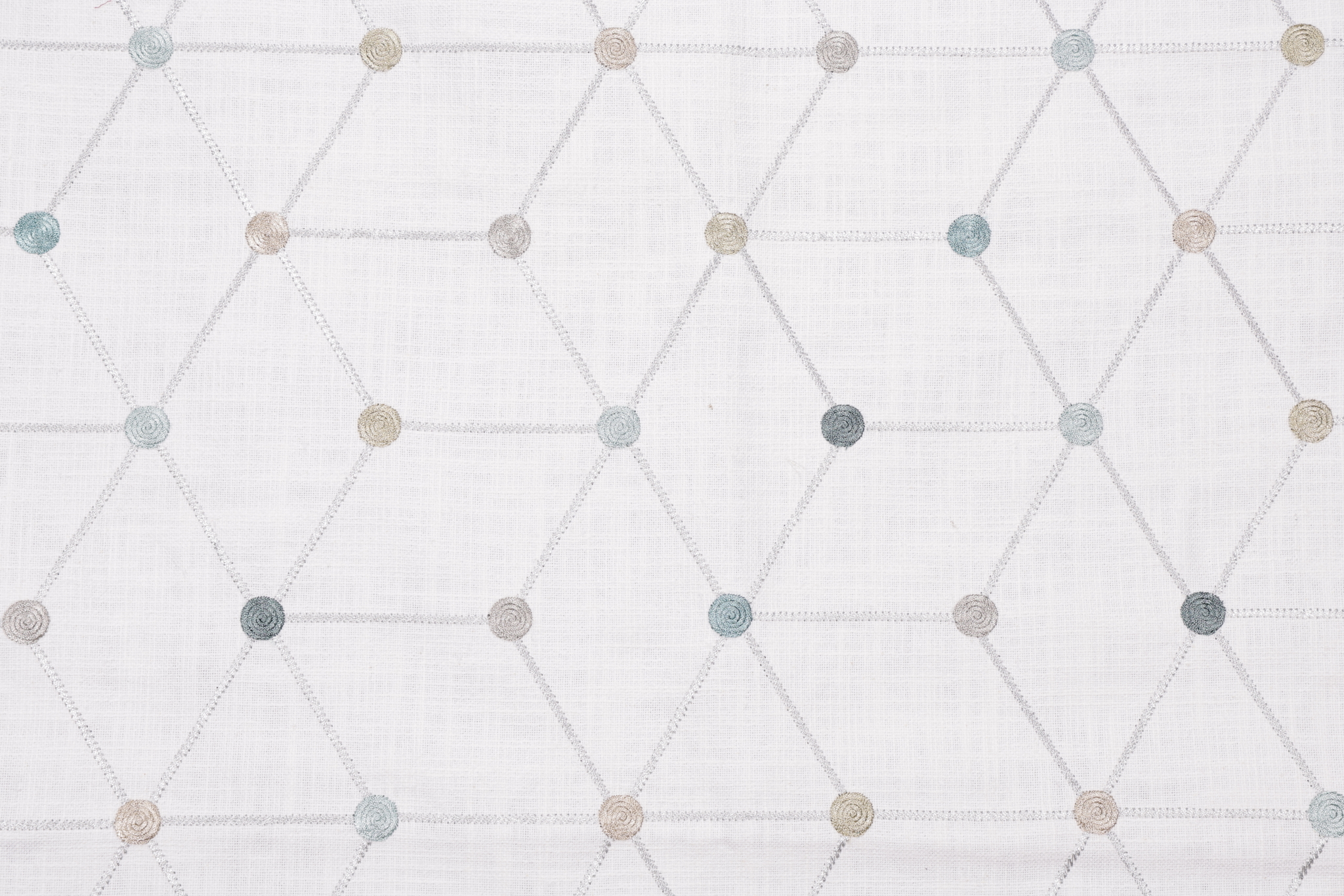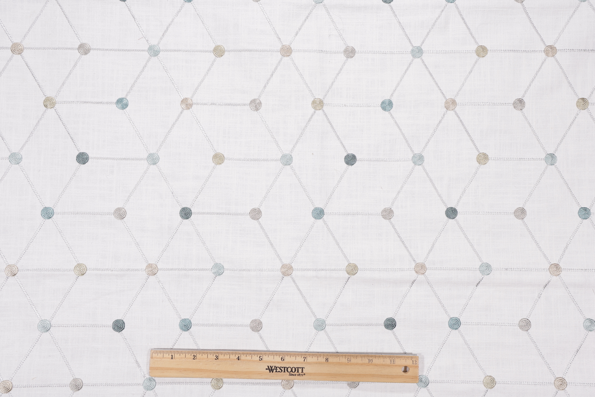 Asterisk Embroidered Drapery Fabric in Aqua is a remnant, which is sold as a whole piece.