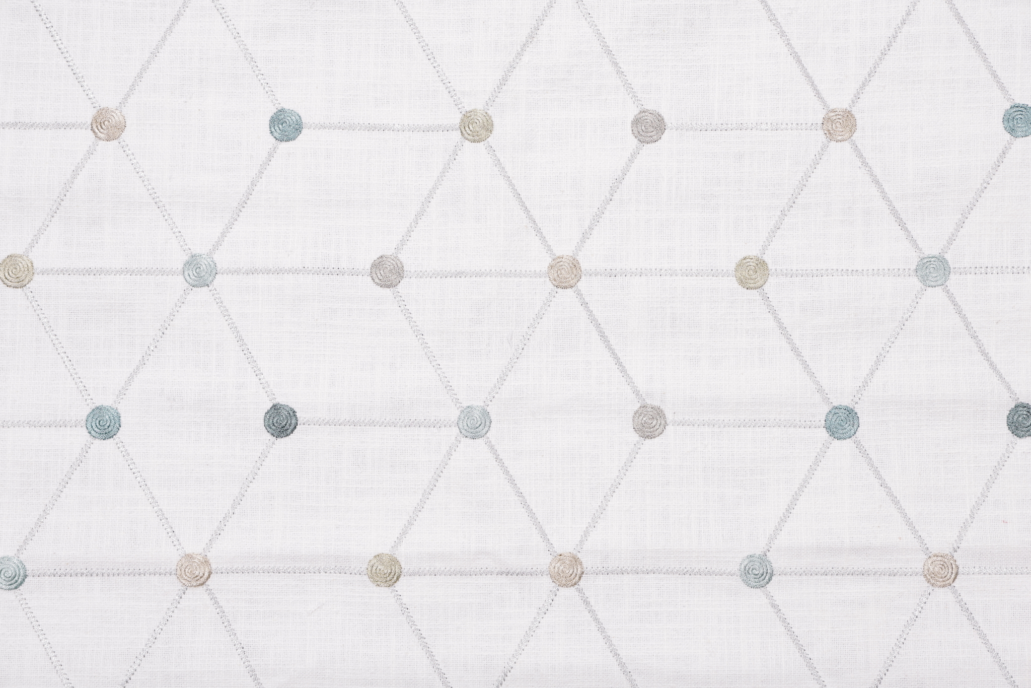 Asterisk Embroidered Drapery Fabric in Aqua is a remnant, which is sold as a whole piece.