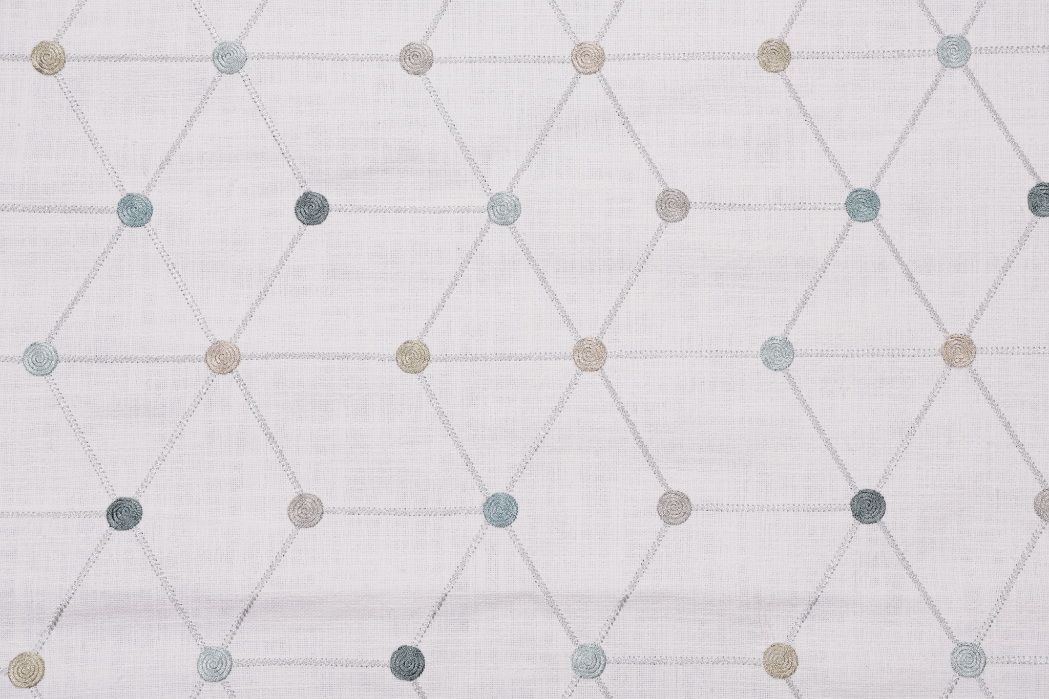 Asterisk Embroidered Drapery Fabric in Aqua is a remnant, which is sold as a whole piece.