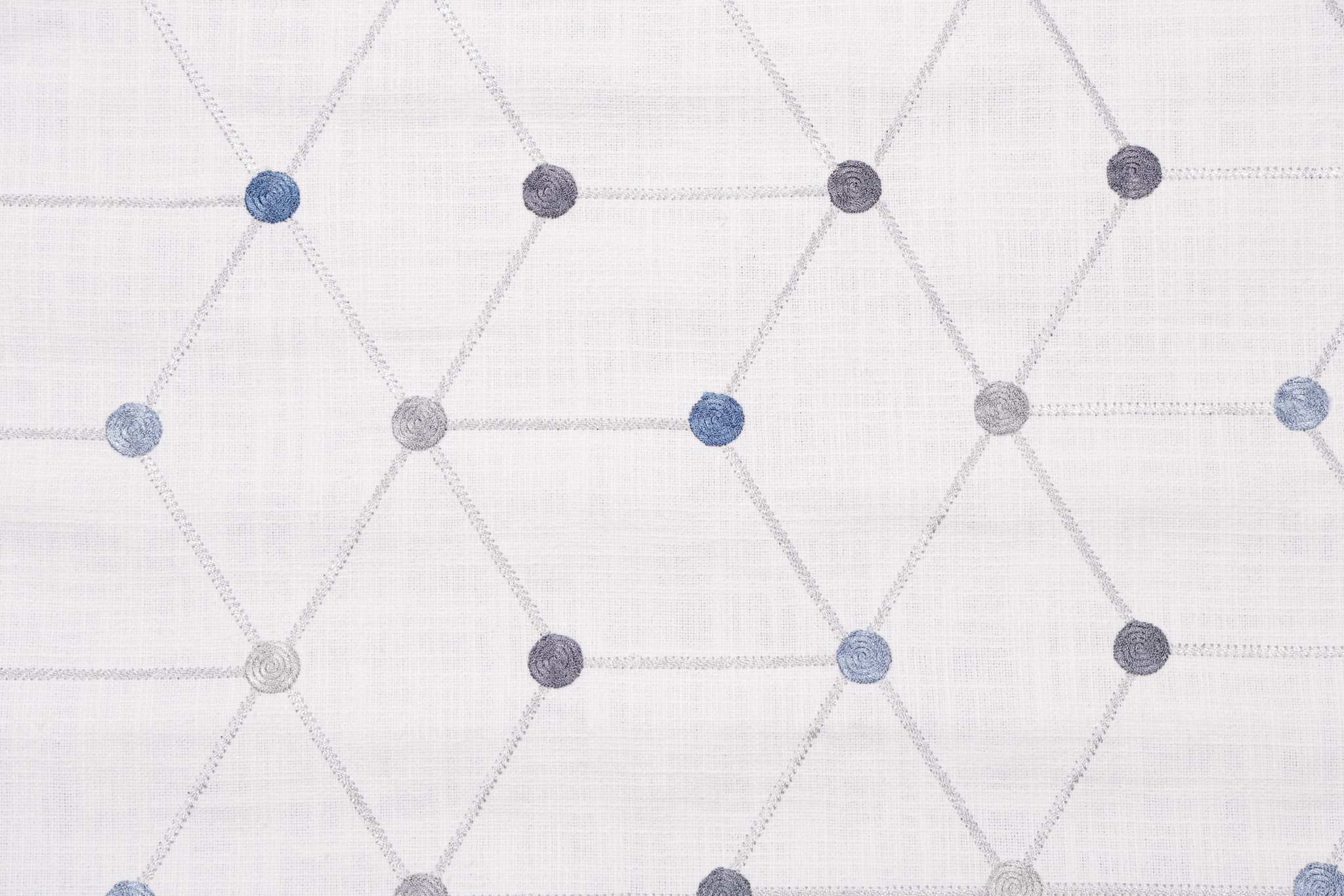 Asterisk Embroidered Drapery Fabric in Blue is a remnant, which is sold as a whole piece.