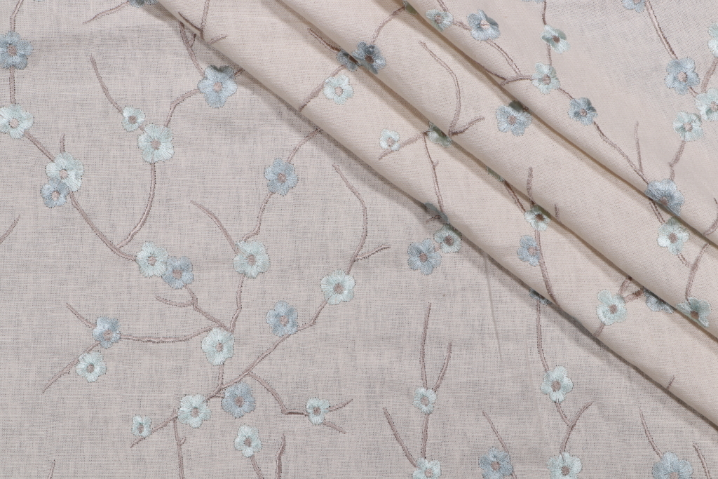 Blossom Embroidered Drapery Fabric in Mist is a remnant, which is sold as a whole piece.