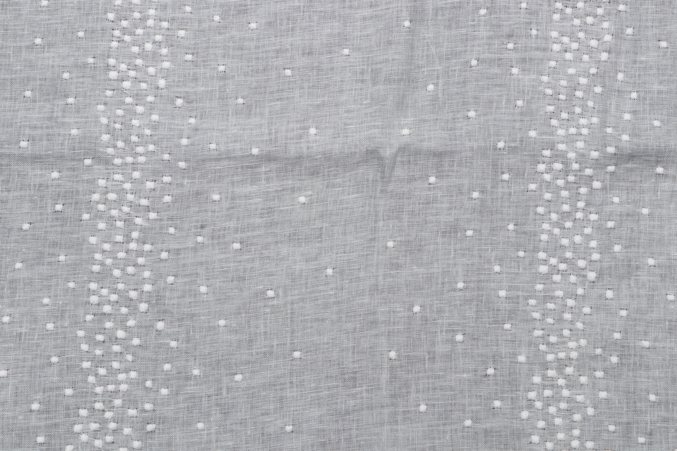 Bubbles Embroidered Drapery Fabric in Mist is a remnant. Fabric remnants refer to leftover pieces of fabric from production runs at manufacturing sites or pieces that remain from by the yard stock. The lengths of these remnants can vary from a few inches to several yards and are typically sold at a reduced price, since they represent remaining inventory.