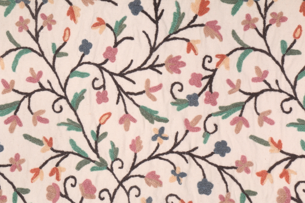 Chain-stitched Decorator Fabric in Jewel is a remnant. Fabric remnants refer to leftover pieces of fabric from production runs at manufacturing sites or pieces that remain from by the yard stock. The lengths of these remnants can vary from a few inches to several yards and are typically sold at a reduced price, since they represent remaining inventory.