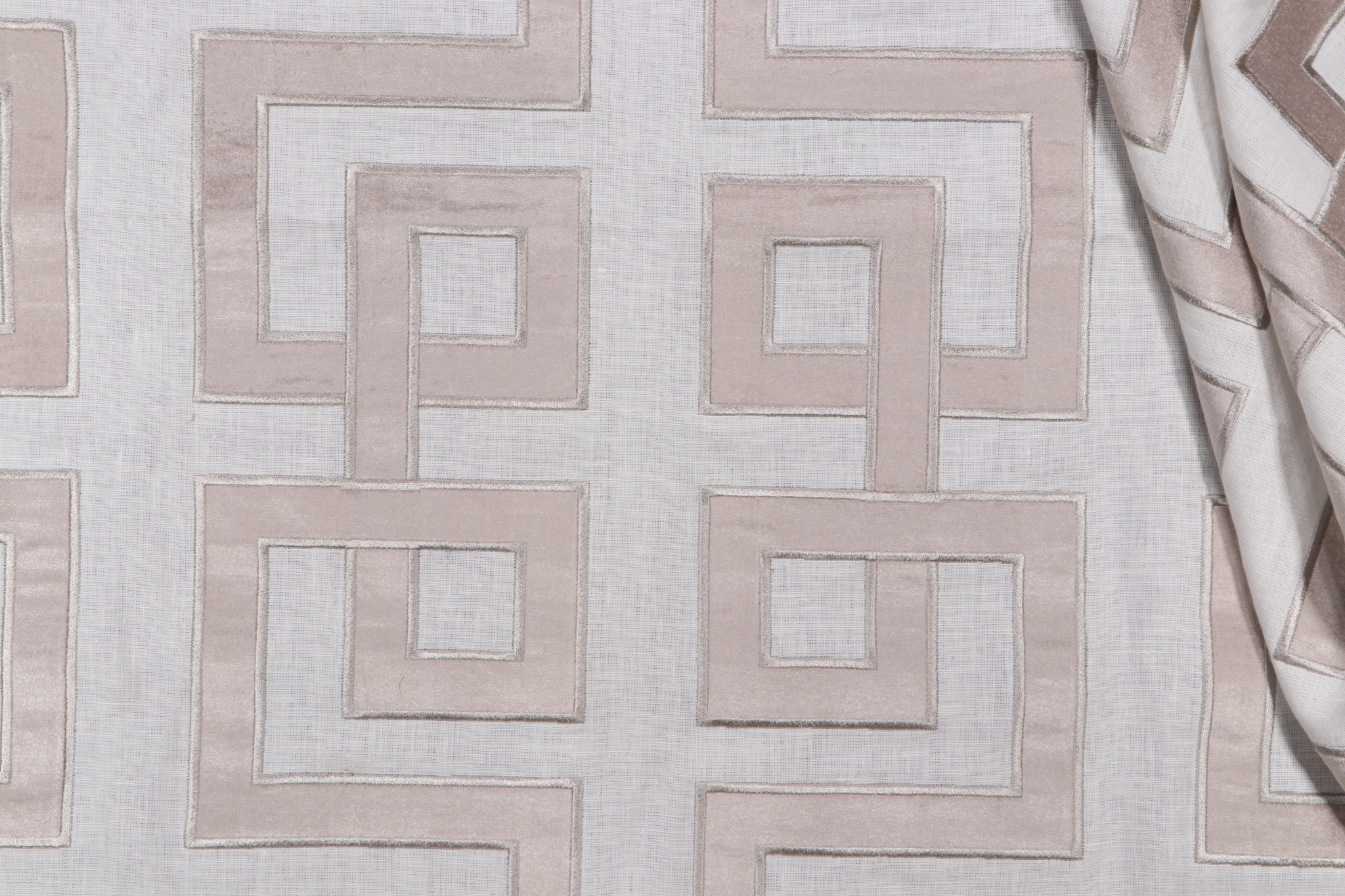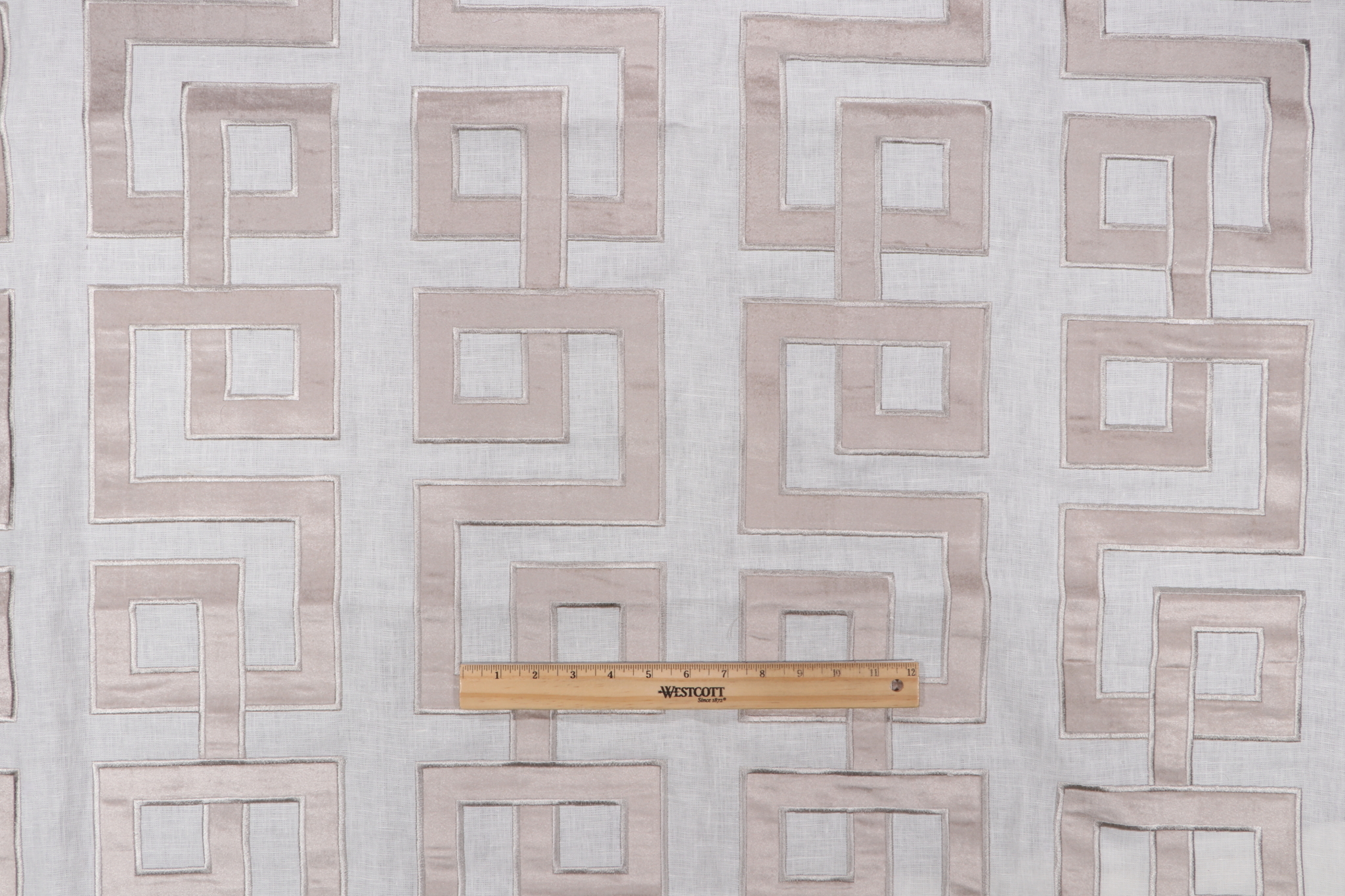 Chenille Applique Embroidered Drapery Fabric in Dove is a remnant, which is sold as a whole piece.