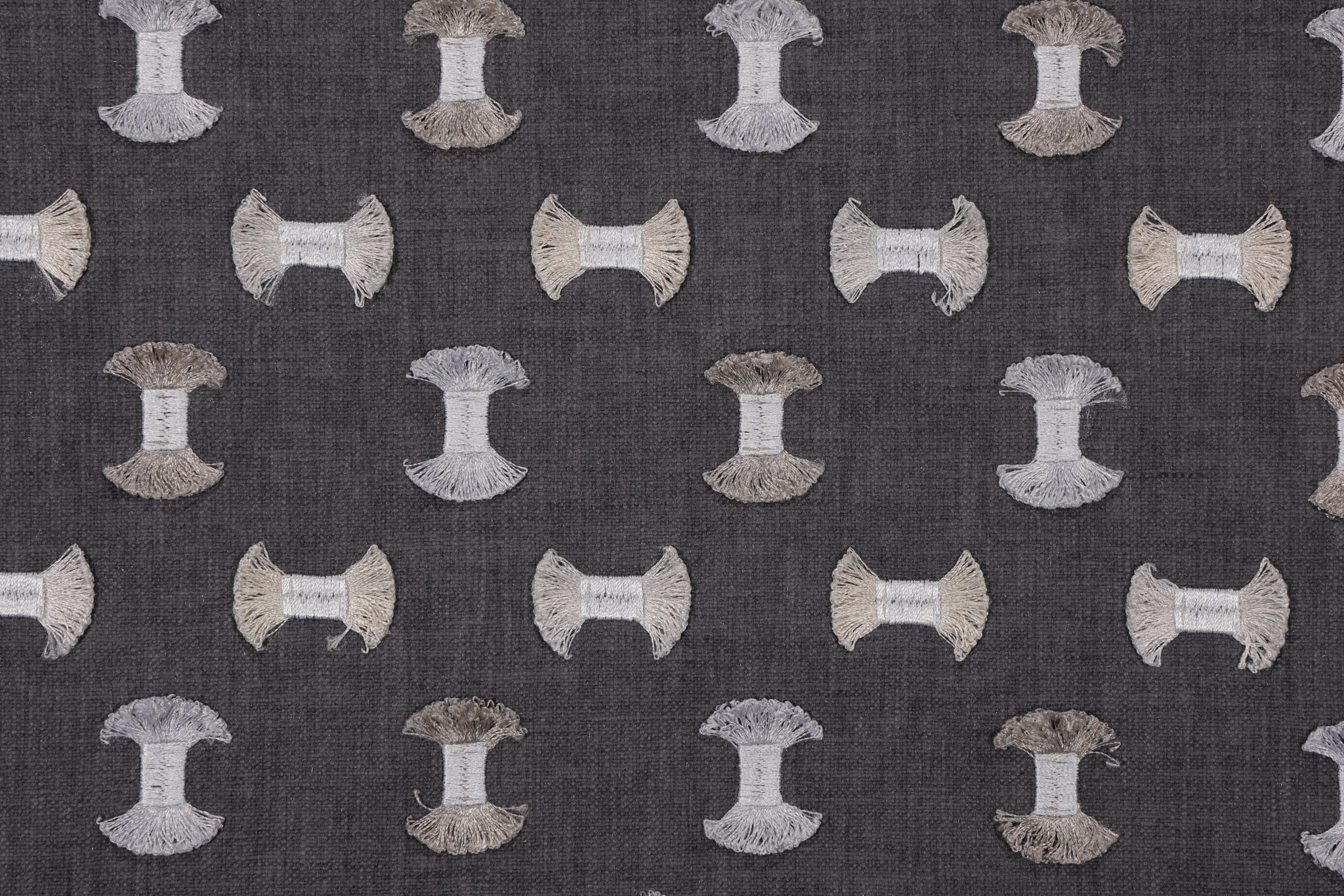 Covington Frayed Embroidered Drapery Fabric in 945-Gunmetal Details