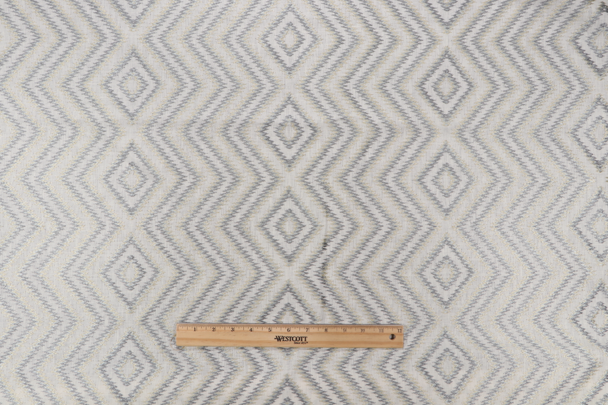 Damona Embroidered Linen Drapery Fabric in Seamist is a remnant, which is sold as a whole piece.
