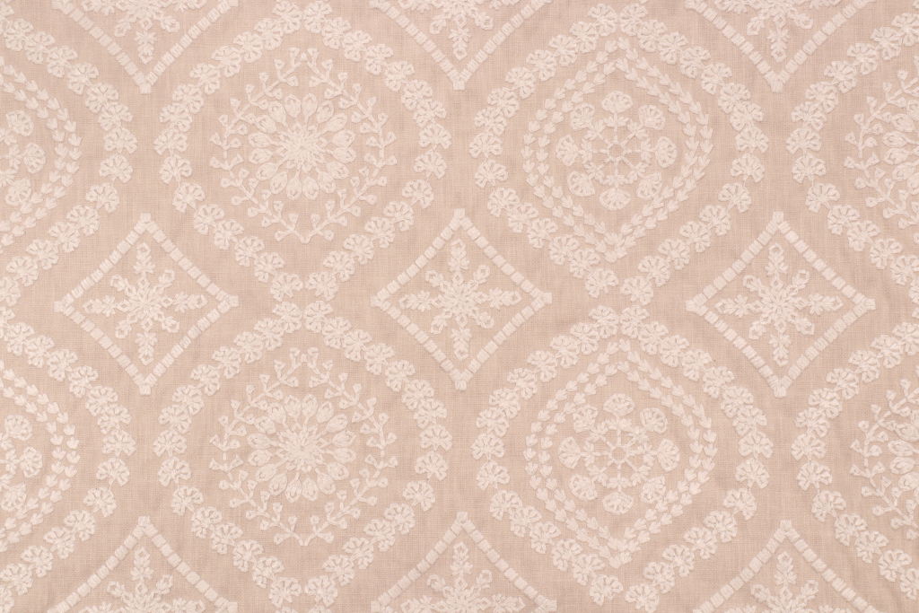 0.88 Yards Ellen Degeneres Alaro Emb Embroidered Drapery Fabric in Natural Details