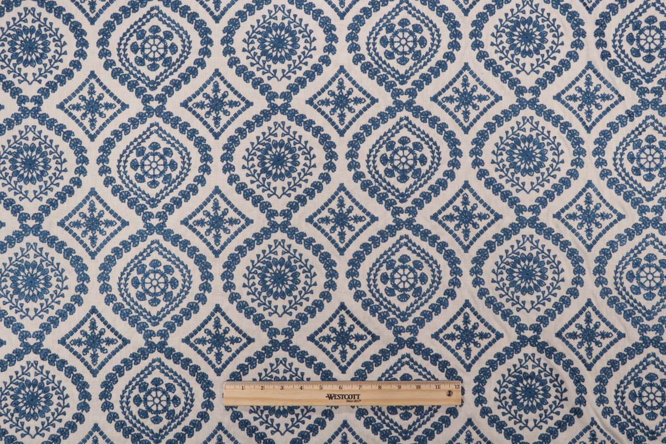 6 Yards Ellen Degeneres Alaro Embroidered Decorator Fabric in Denim Details