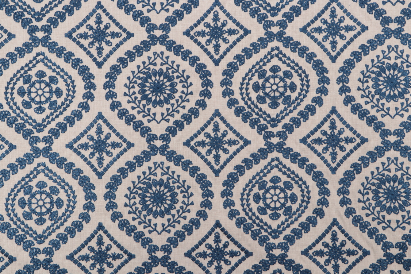 Ellen Degeneres Alaro Embroidered Decorator Fabric in Denim is a remnant, which is sold as a whole piece.