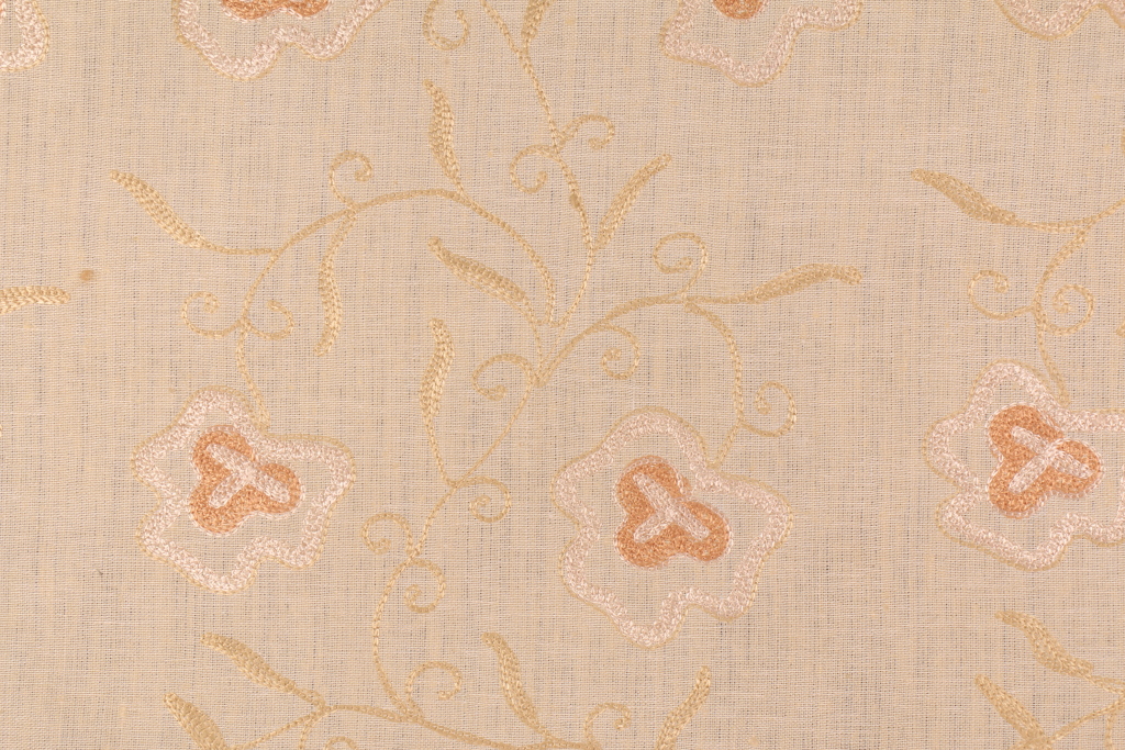 Floral Embroidered Linen Decorator Fabric in Natural is a remnant. Fabric remnants refer to leftover pieces of fabric from production runs at manufacturing sites or pieces that remain from by the yard stock. The lengths of these remnants can vary from a few inches to several yards and are typically sold at a reduced price, since they represent remaining inventory.