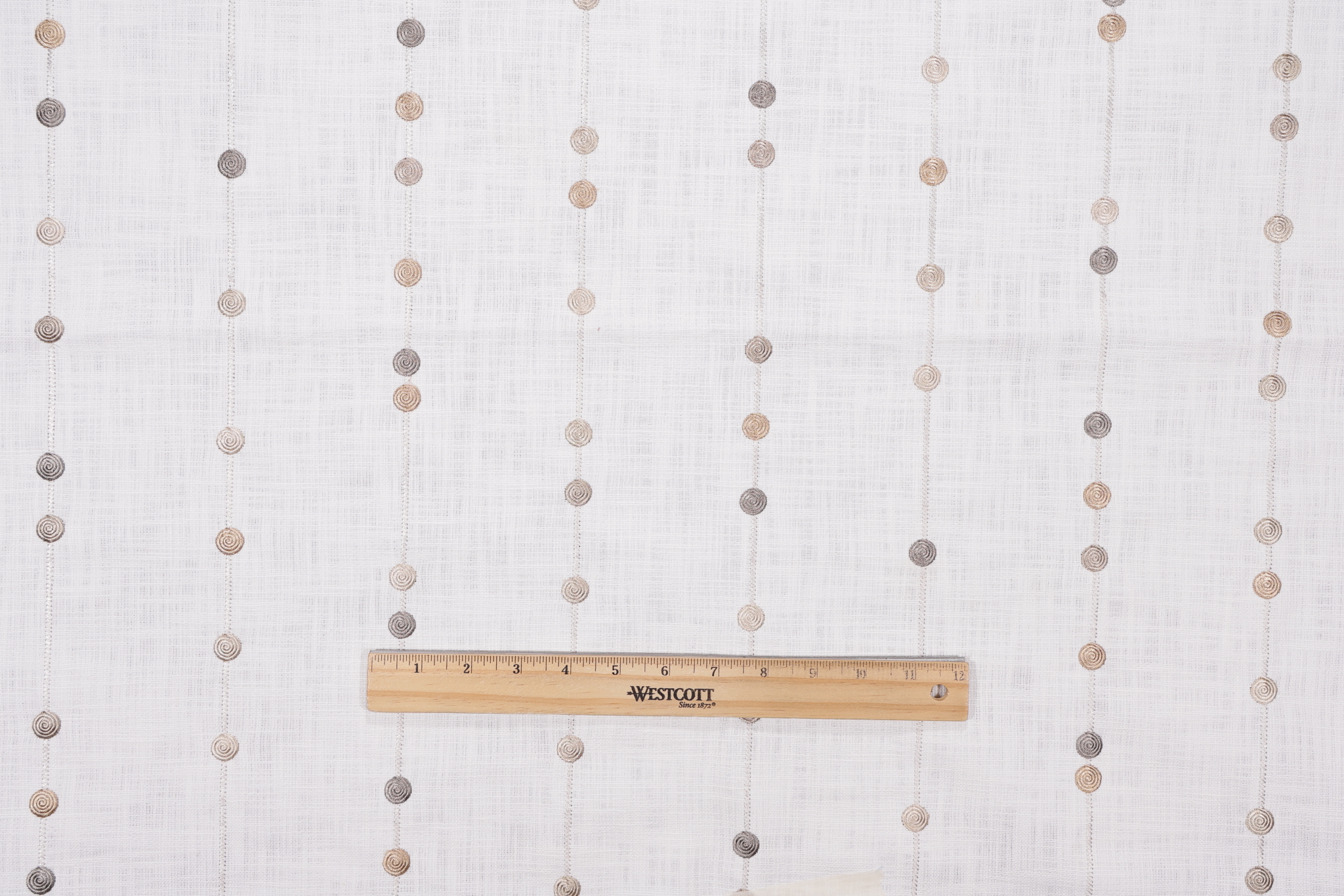 Now offering .88 yards of Flynn, a high-quality embroidered drapery fabric. This fabric is suitable for short curtains, decorative tiebacks, or smaller window treatments. Note: If you are unsure about the suitability of this fabric for your specific use case please contact us prior to ordering.
