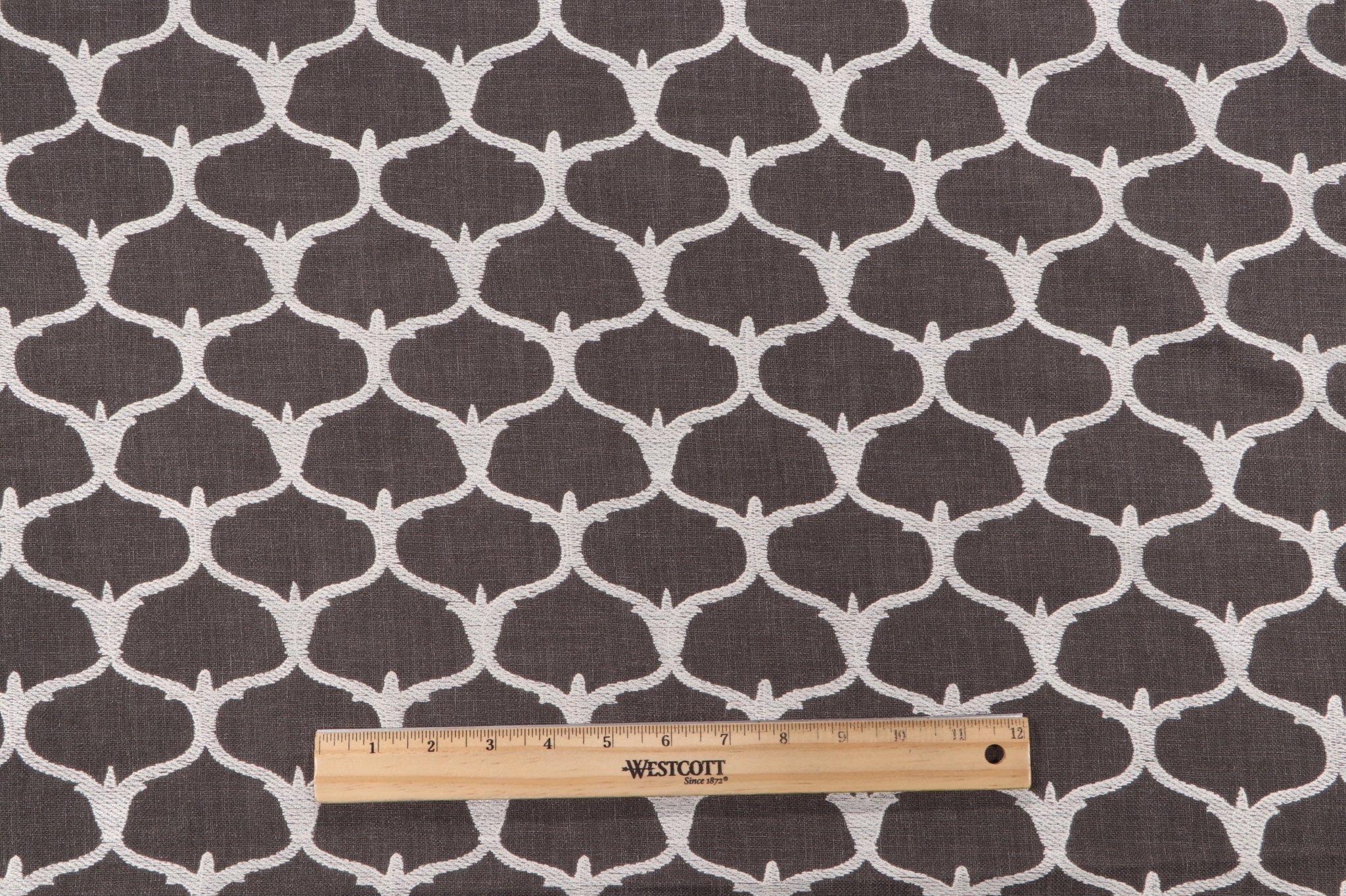 Grenelle Embroidered Drapery Fabric in Graphite is a remnant, which is sold as a whole piece.