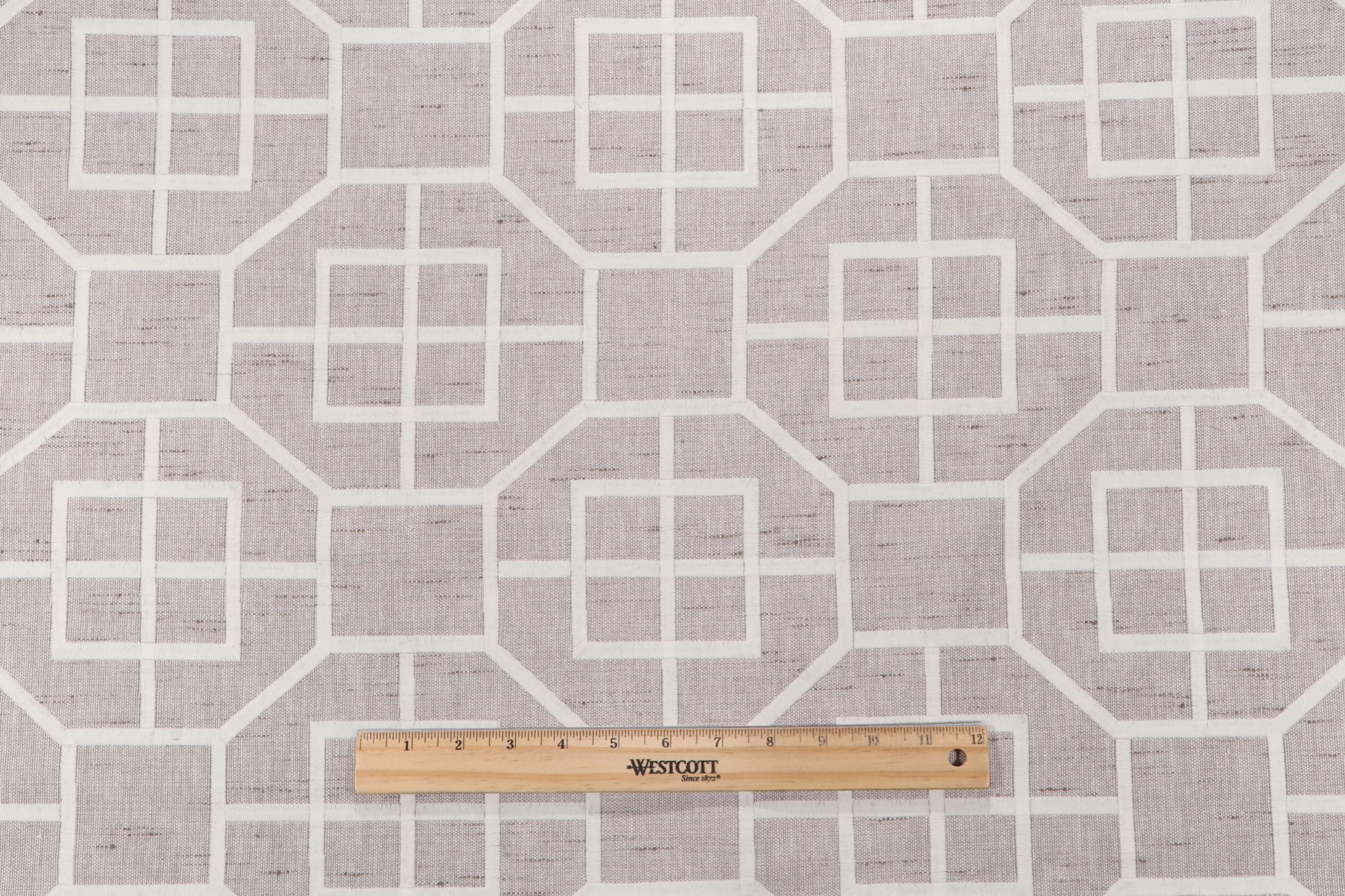 Heritage Fabrics Octagon Embroidered Drapery Fabric in Linen is a remnant, which is sold as a whole piece.