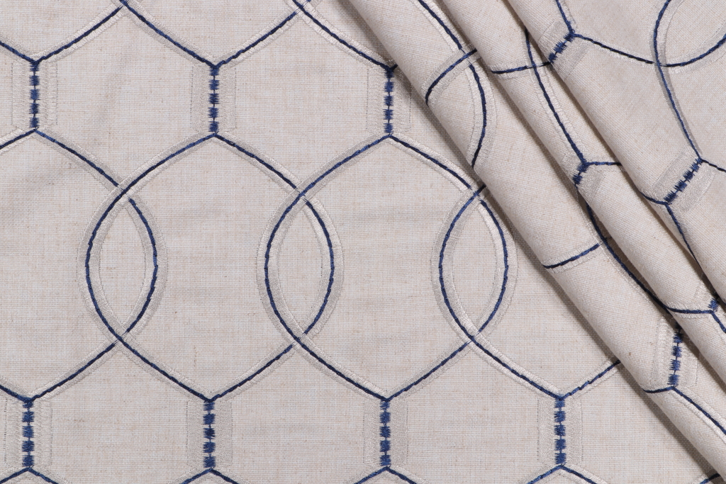 Hourglass Embroidered Drapery Fabric in Bluestone is a remnant, which is sold as a whole piece.