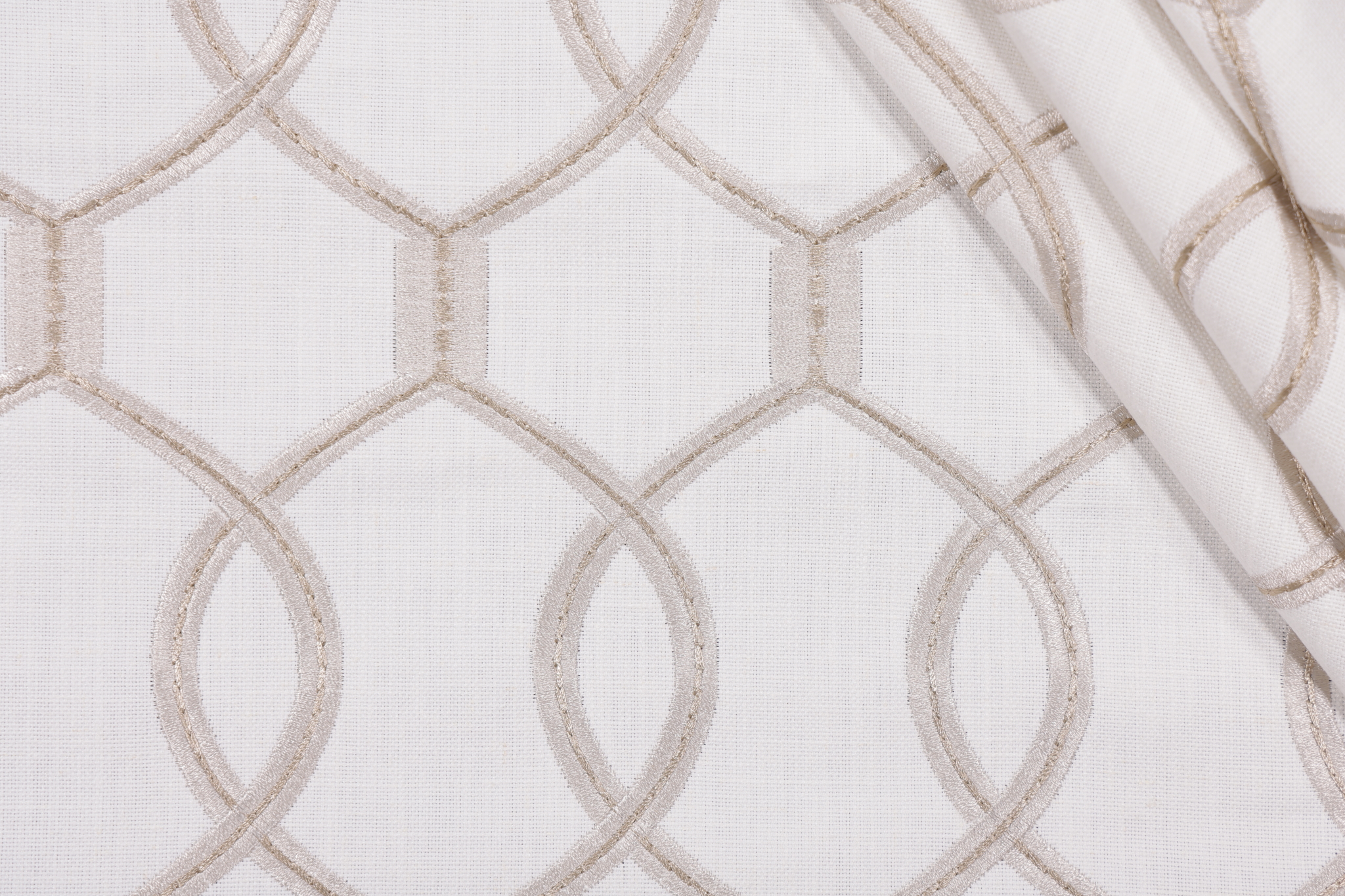 Hourglass Embroidered Drapery Fabric in Snow is a remnant, which is sold as a whole piece.