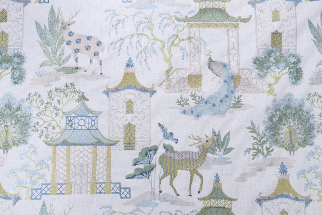 1.25 Yards P Kaufmann Alaya Embroidered Drapery Fabric in Mist Details