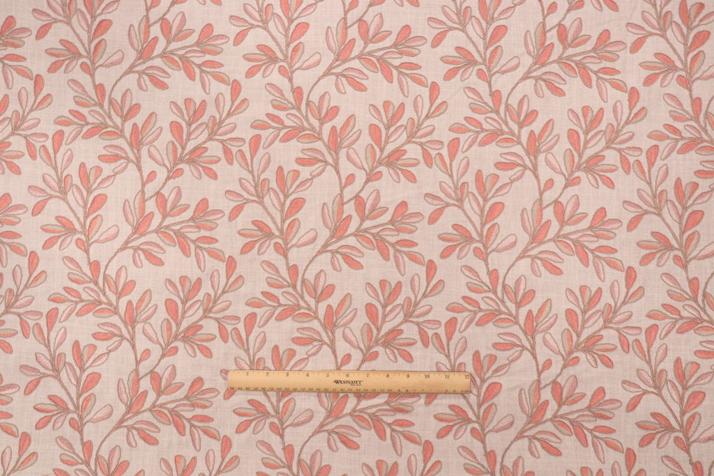 P Kaufmann Leafage Embroidered Drapery Fabric in Clay is a remnant, which is sold as a whole piece.