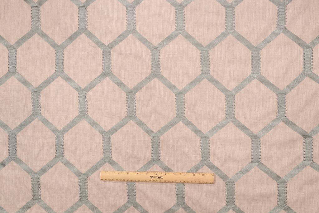 P Kaufmann Trapeze Embroidered Drapery Fabric in Lichen is a remnant, which is sold as a whole piece.