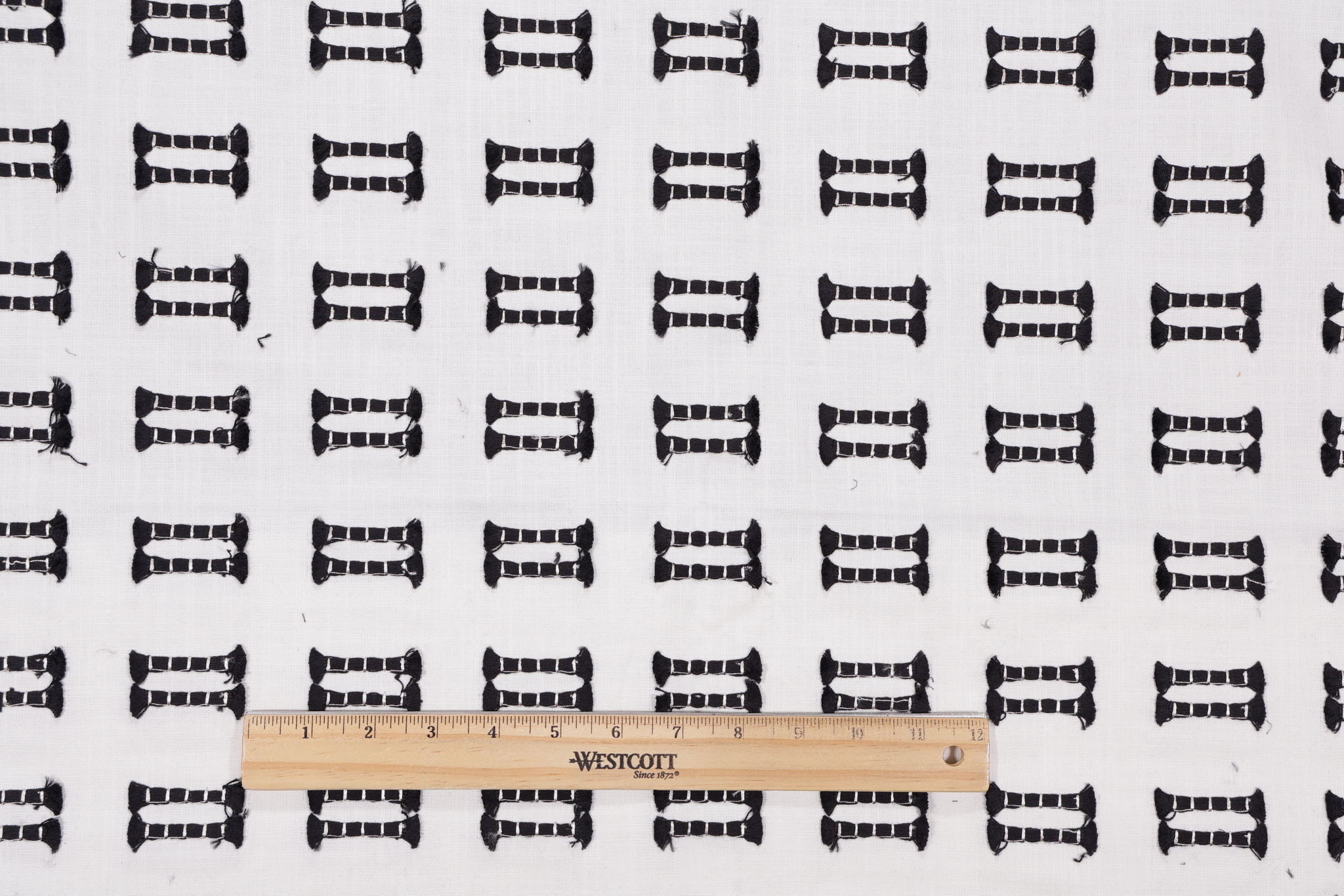 Kvasto Embroidered Drapery Fabric in Tuxedo is a remnant. Fabric remnants refer to leftover pieces of fabric from production runs at manufacturing sites or pieces that remain from by the yard stock. The lengths of these remnants can vary from a few inches to several yards and are typically sold at a reduced price, since they represent remaining inventory.