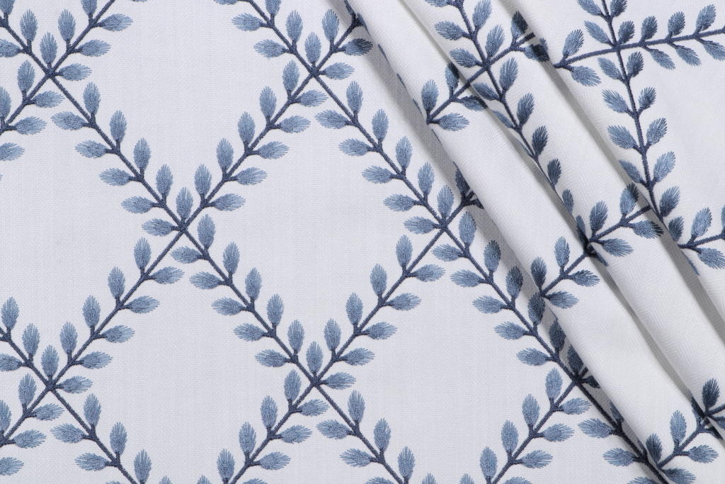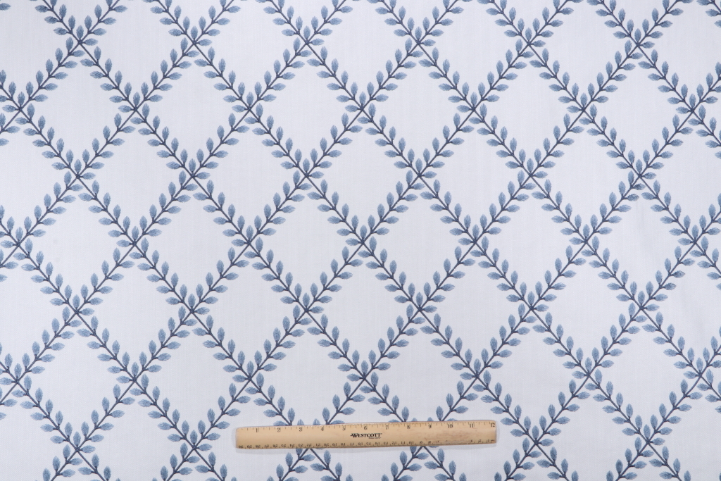PK Lifestyles Clover Lane Emb Drapery Fabric in Porcelain is a remnant, which is sold as a whole piece.