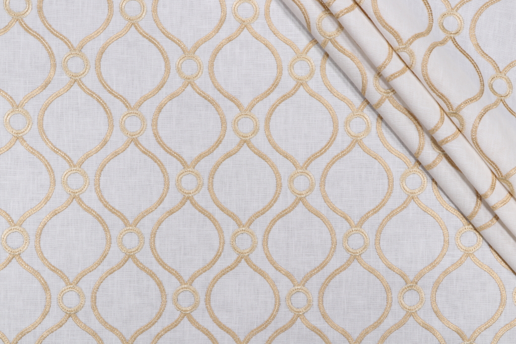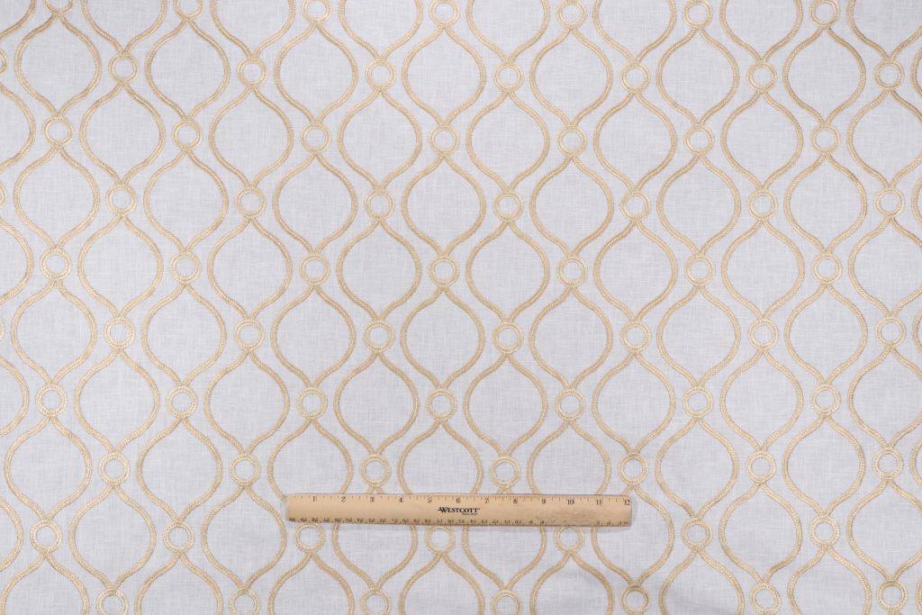 PK Lifestyles Curveball Embroidered Drapery Fabric in Gold is a remnant, which is sold as a whole piece.