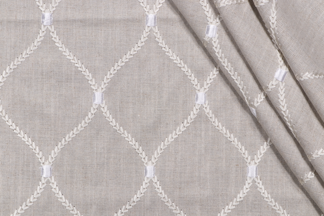 This is 2.38 yards of Deane, a high-quality embroidered drapery fabric from PK Lifestyles. This fabric is suitable for short curtains, decorative tiebacks, or smaller window treatments. Note: If you are unsure about the suitability of this fabric for your specific use case please contact us prior to ordering.