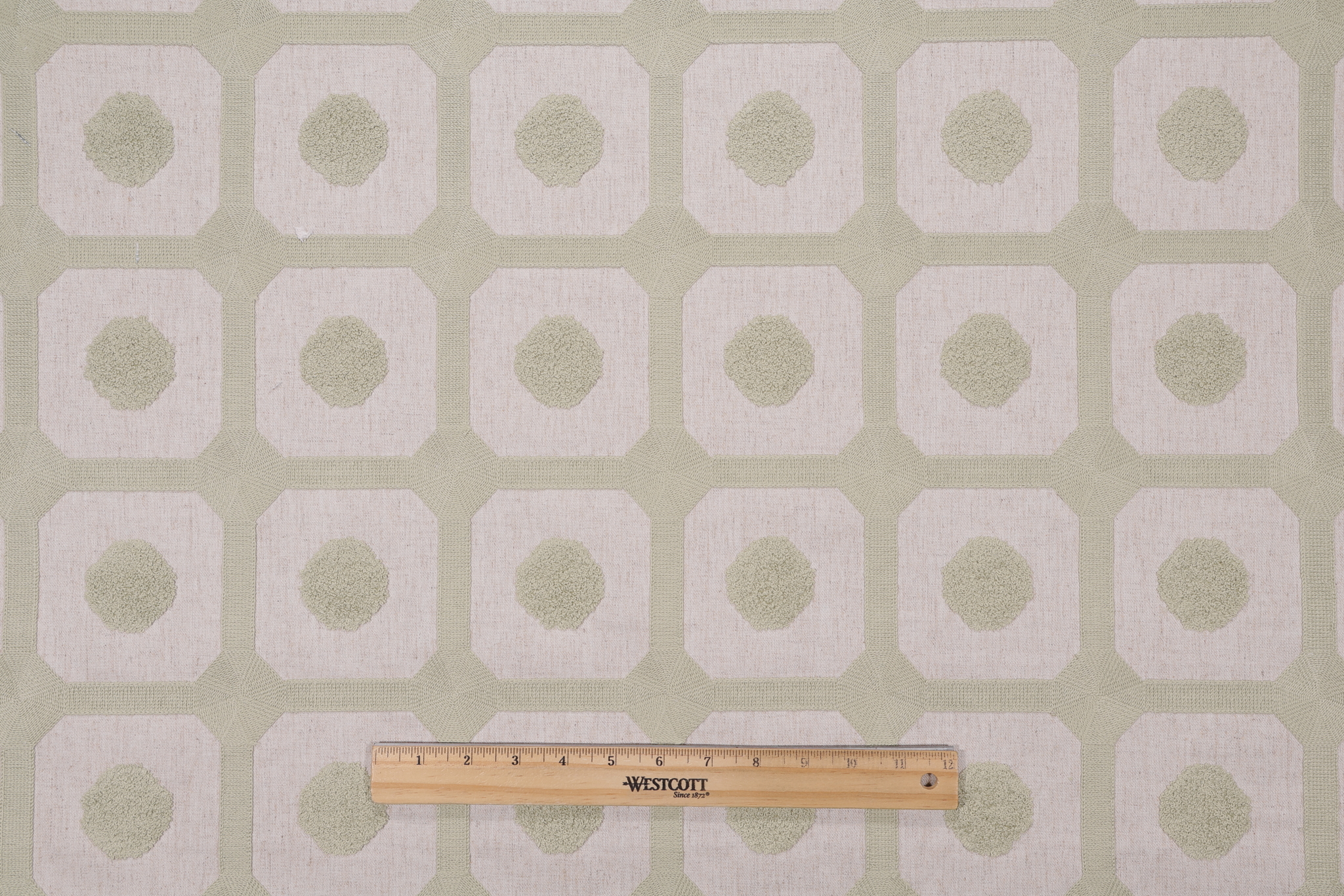 PK Lifestyles Needle And Thread Embroidered Drapery Fabric in Sage is a remnant, which is sold as a whole piece.