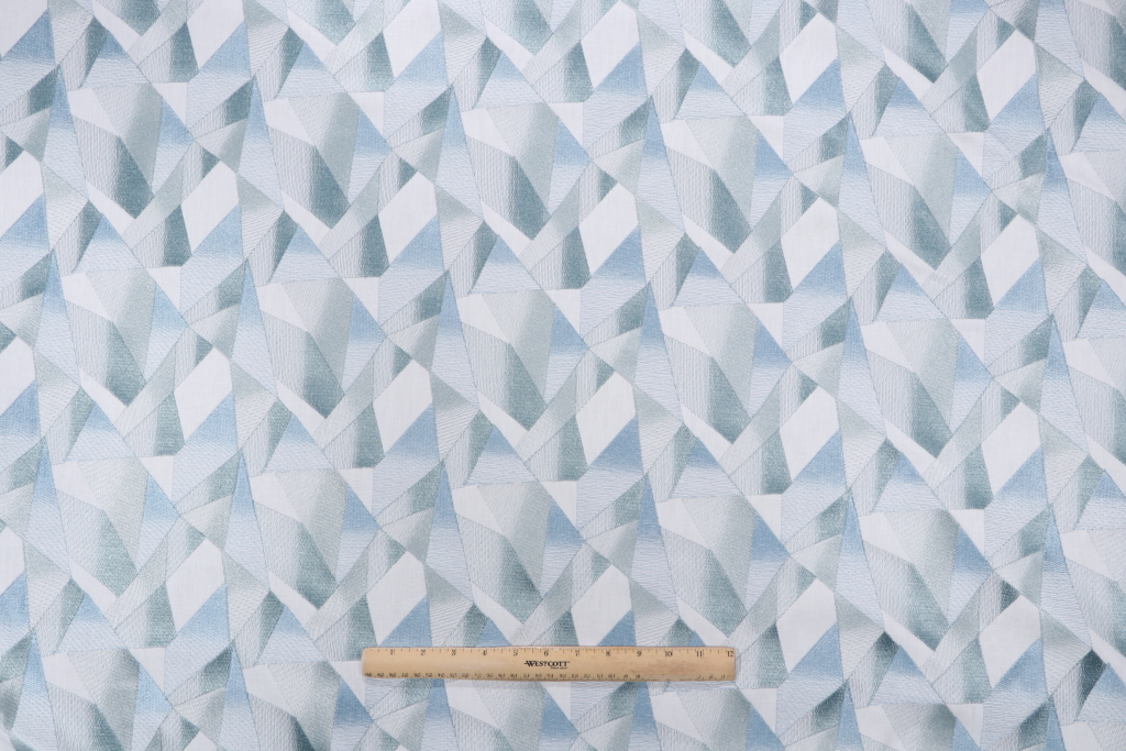 PK Lifestyles Prism Embroidered Drapery Fabric in Aquamarine is a remnant. Fabric remnants refer to leftover pieces of fabric from production runs at manufacturing sites or pieces that remain from by the yard stock. The lengths of these remnants can vary from a few inches to several yards and are typically sold at a reduced price, since they represent remaining inventory.