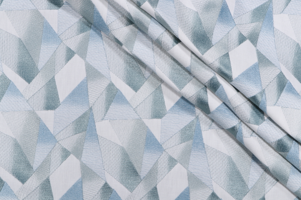 PK Lifestyles Prism Embroidered Drapery Fabric in Aquamarine is a remnant, which is sold as a whole piece.