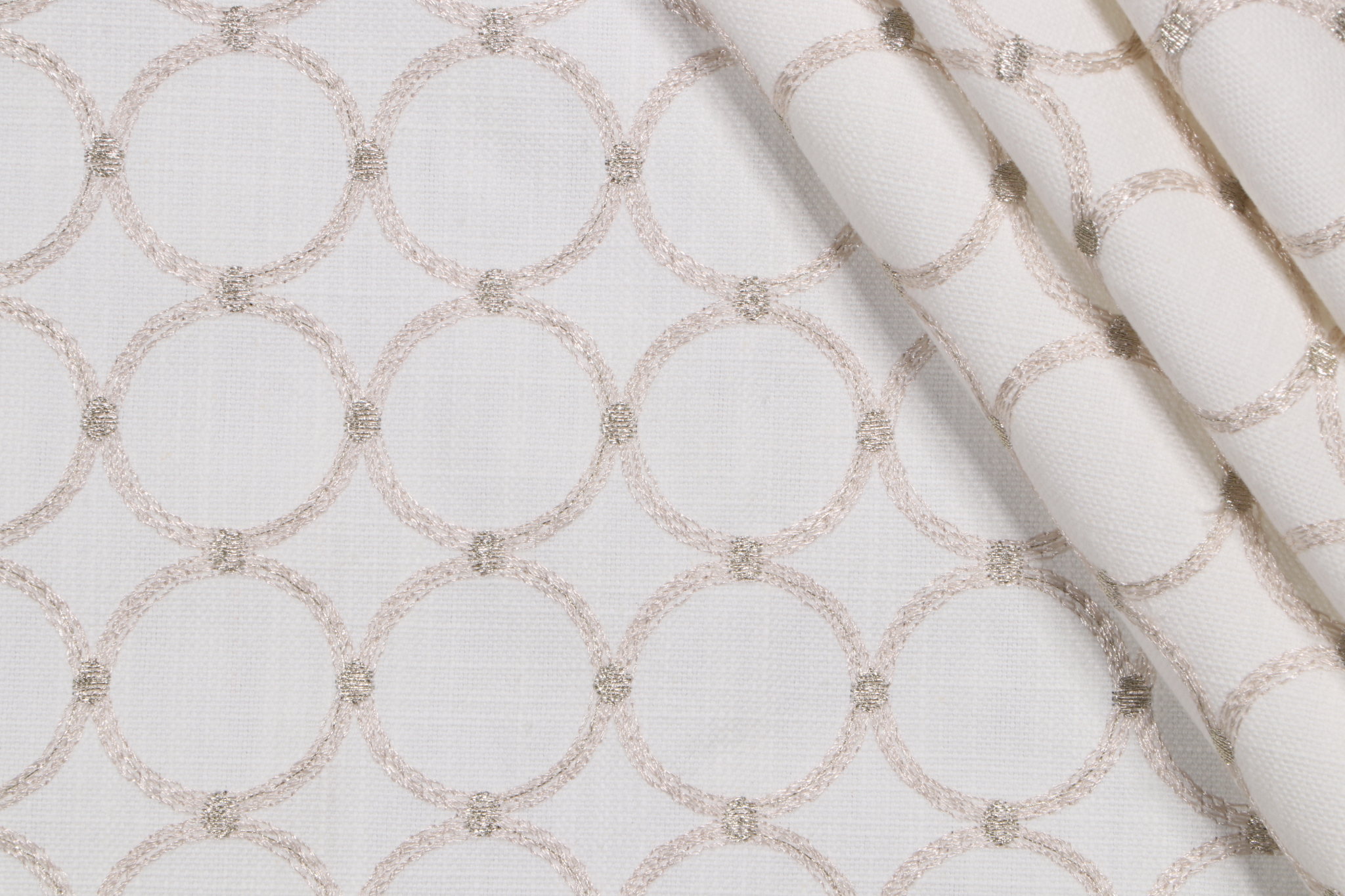 PK Lifestyles Ringtone Embroidered Drapery Fabric in Quartz is a remnant, which is sold as a whole piece.