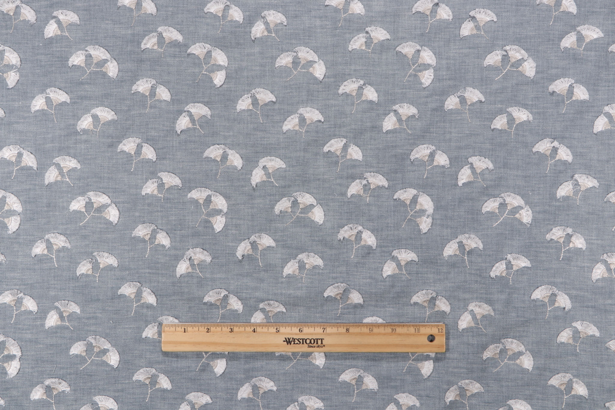 PK Lifestyles Whispering Leaf Embroidered Drapery Fabric in Chambray is a remnant, which is sold as a whole piece.