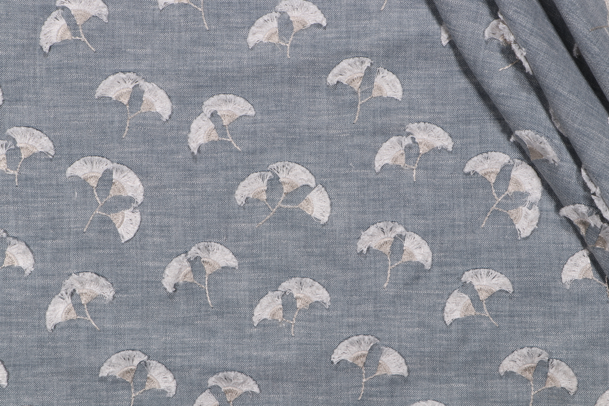 1 Yards PK Lifestyles Whispering Leaf Embroidered Drapery Fabric in Chambray Details
