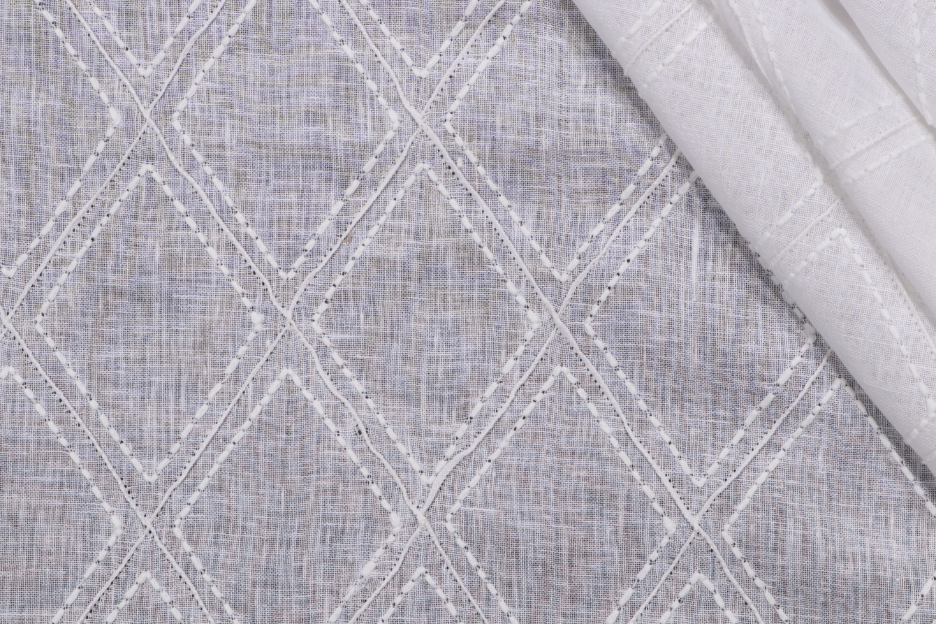 Lino Textiles Karla Sheer Embroidered Drapery Fabric in White is a remnant, which is sold as a whole piece.