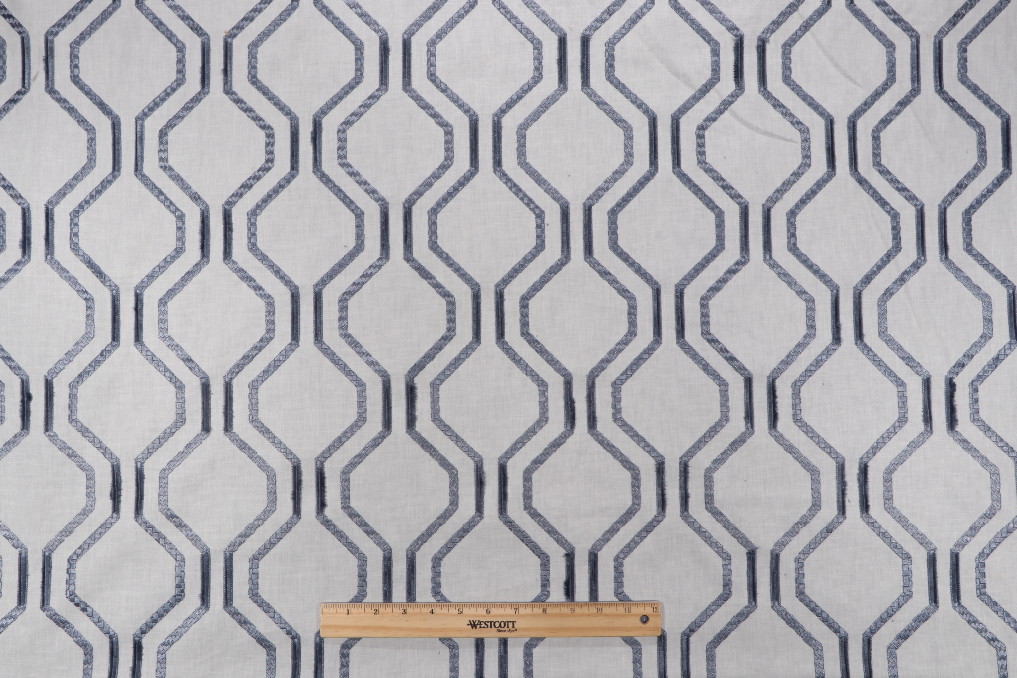 If you order a sample of Mill Creek Entertainer Embroidered Drapery Fabric in Dresden the size of the swatch you receive will be approximately 4" x 6". This is enough fabric to verify color and texture, but may not be large enough to capture an entire pattern.