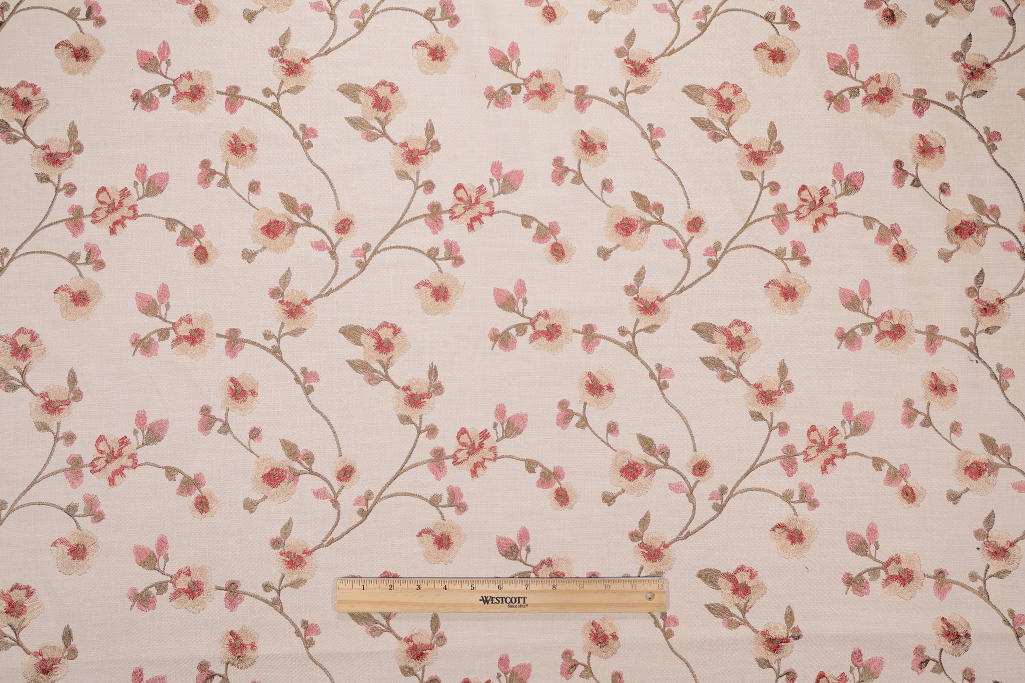 If you order a sample of Mill Creek Funlover Embroidered Drapery Fabric in Harvest the size of the swatch you receive will be approximately 4" x 6". This is enough fabric to verify color and texture, but may not be large enough to capture an entire pattern.