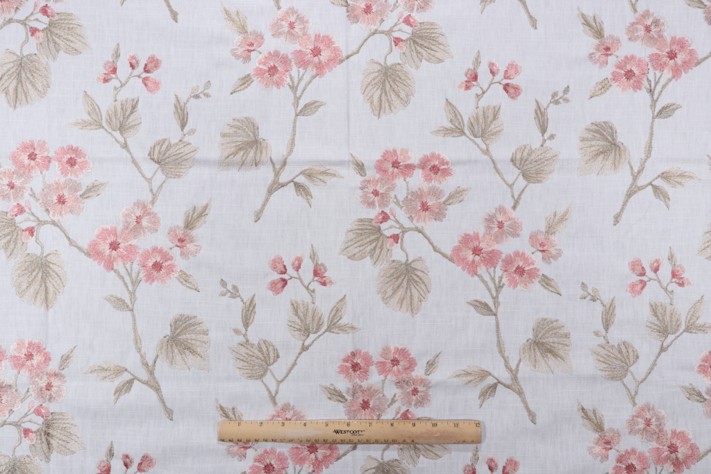 0.88 Yards Mill Creek Oleander Embroidered Drapery Fabric in Coral Details