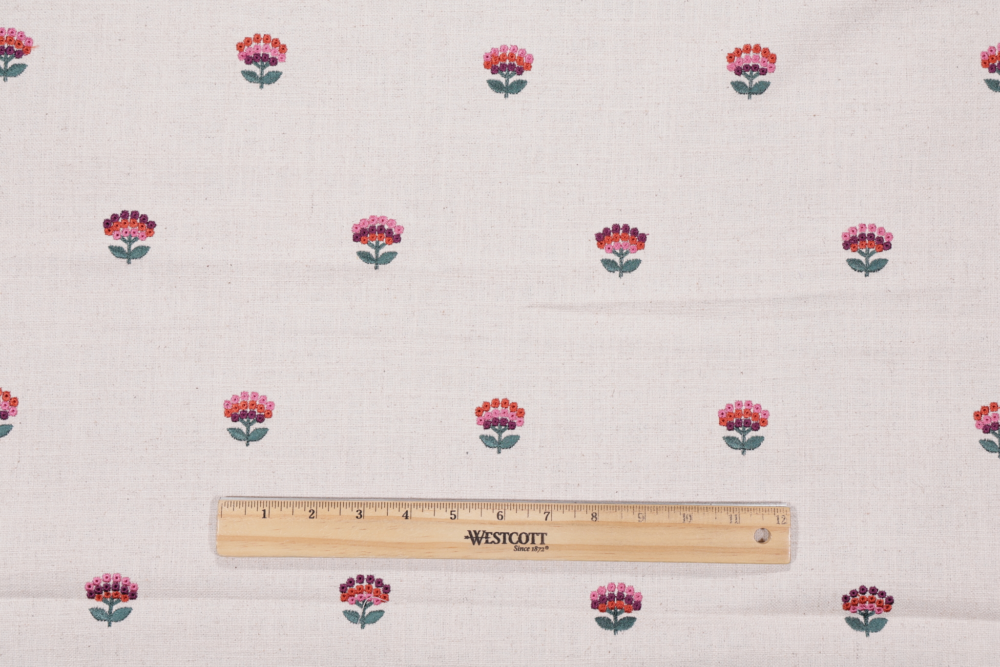 Montefalco Embroidered Drapery Fabric in Fuchsia/Rose is a remnant, which is sold as a whole piece.