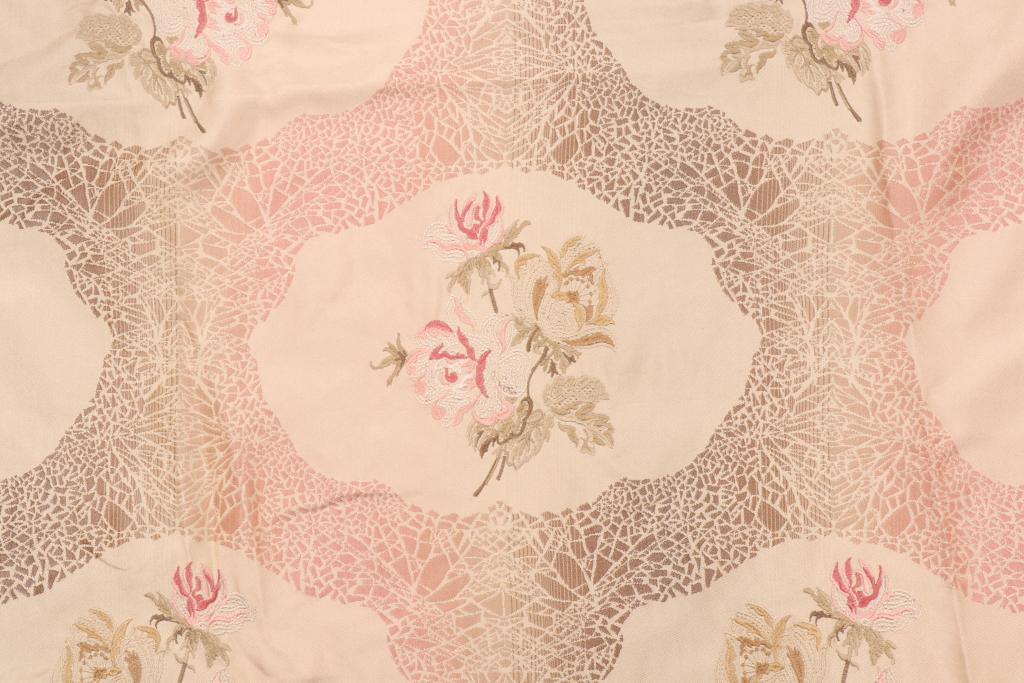 Old World Weavers Pandit Rose Embroidered Silk Decorator Fabric in Rose is a remnant, which is sold as a whole piece.