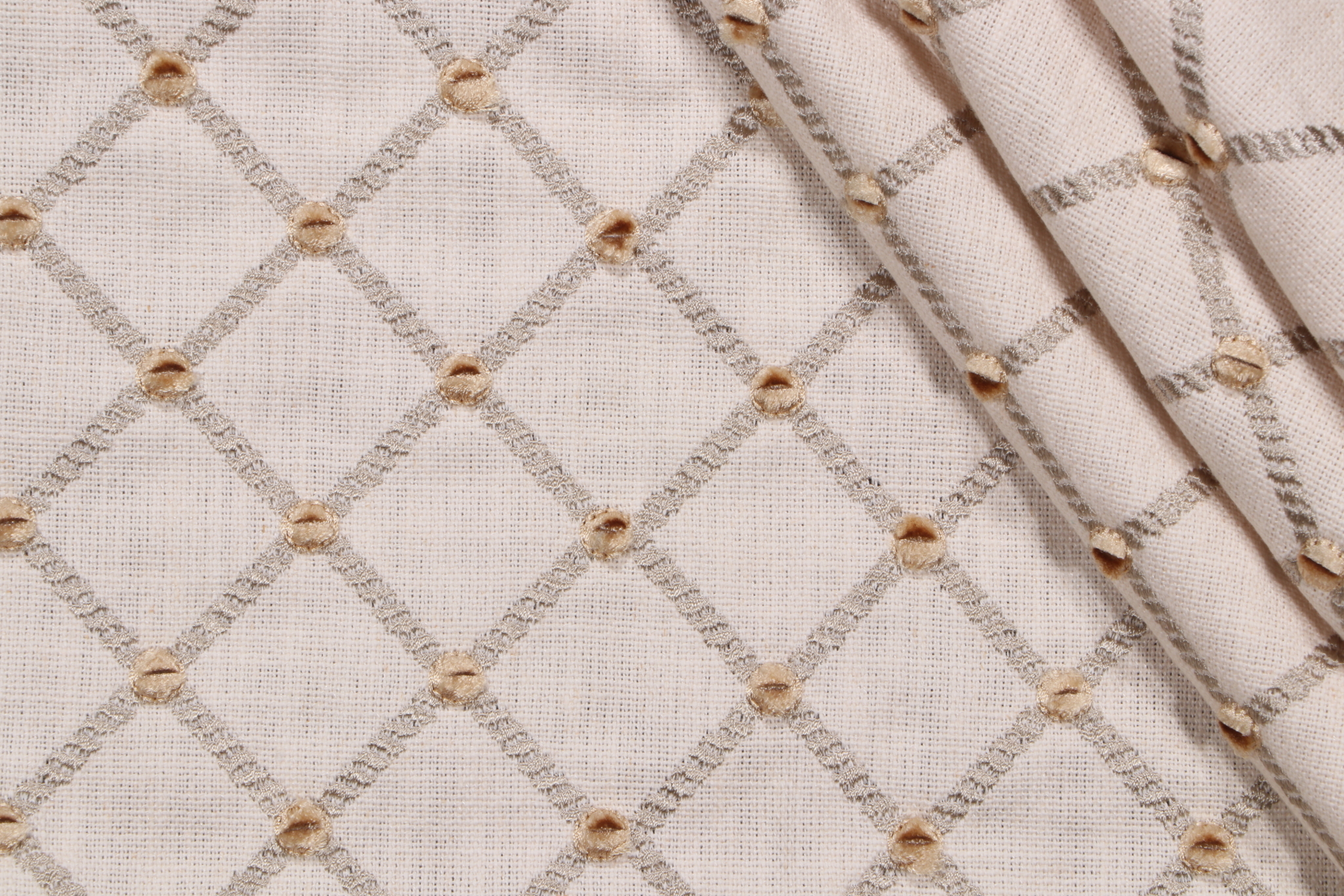 1.63 Yards Precision Embroidered Drapery Fabric in Linen Details