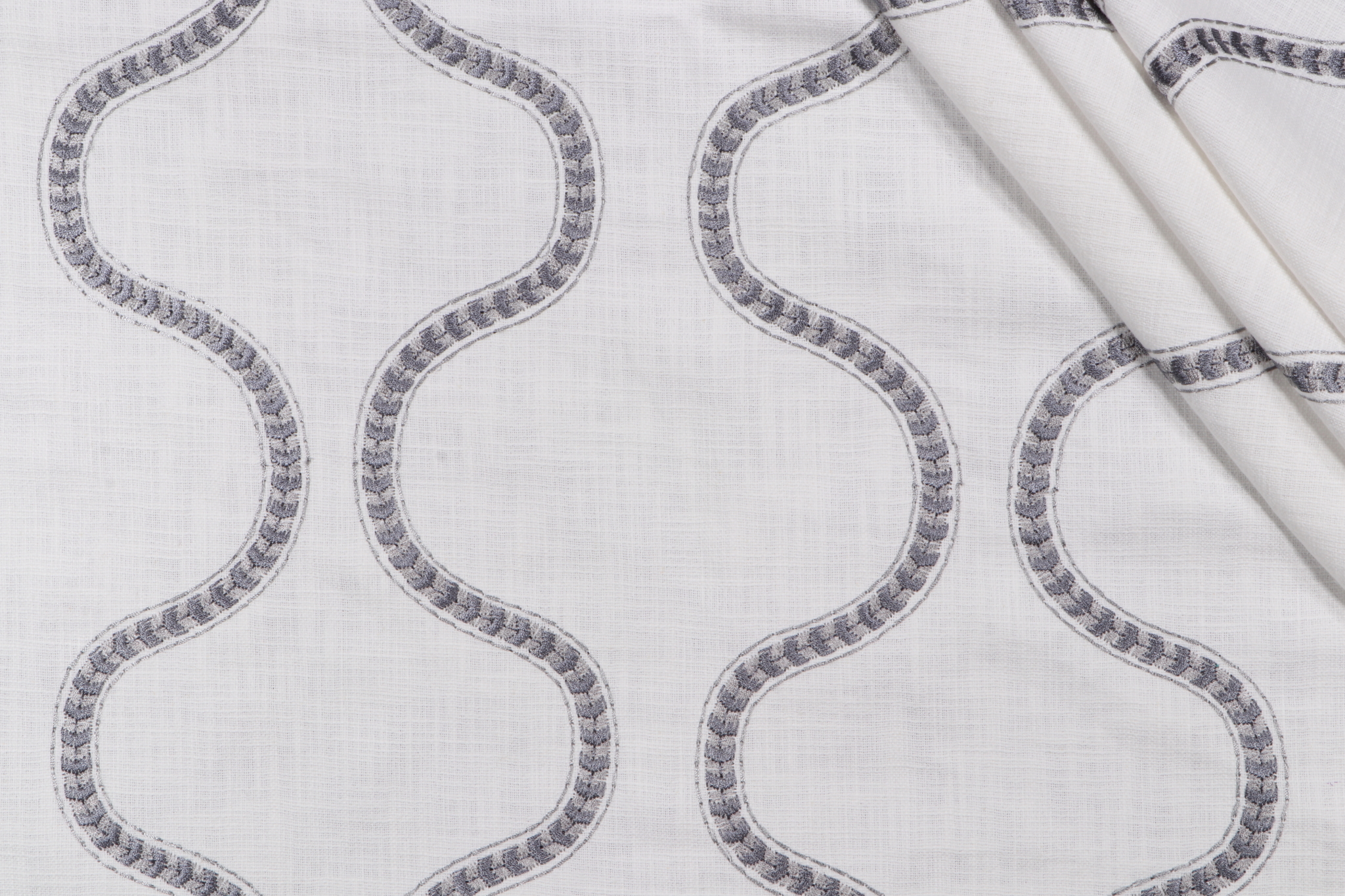 2.75 Yards Richloom Arthur Embroidered Drapery Fabric in Slate Details