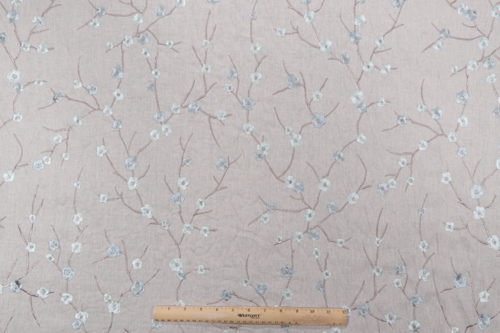 Richloom Blossom Embroidered Drapery Fabric in Mist is a remnant, which is sold as a whole piece.