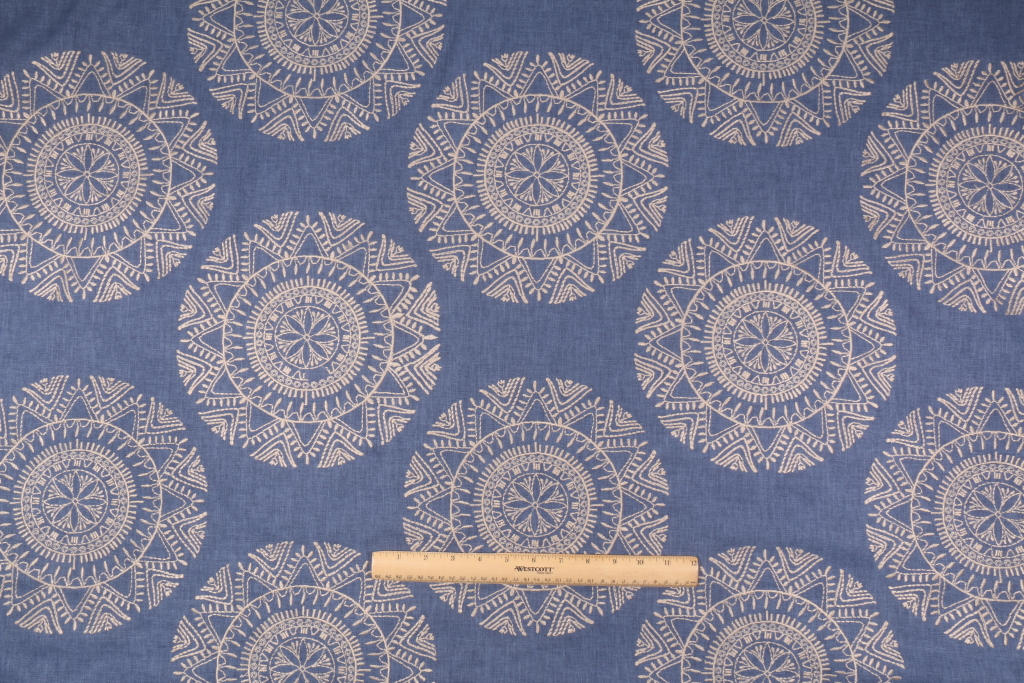 0.88 Yards Richloom Saskia Embroidered Cotton Blend Decorator Fabric in Bluestone Details