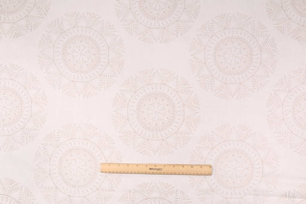 Richloom Saskia Embroidered Cotton Blend Decorator Fabric in Pearl is a remnant, which is sold as a whole piece.