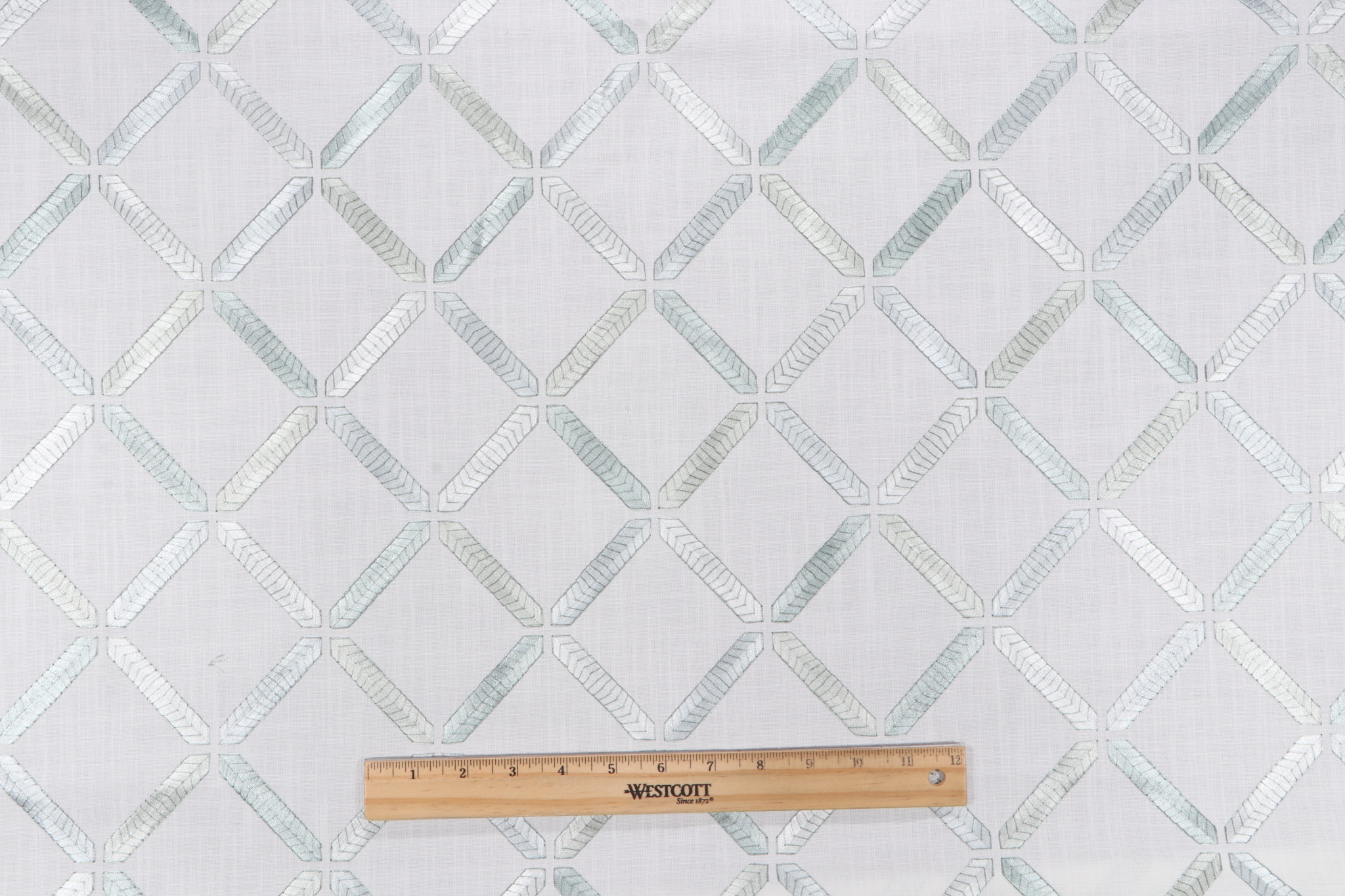 4.25 Yards Ruru Embroidered Drapery Fabric in Beach Glass Details